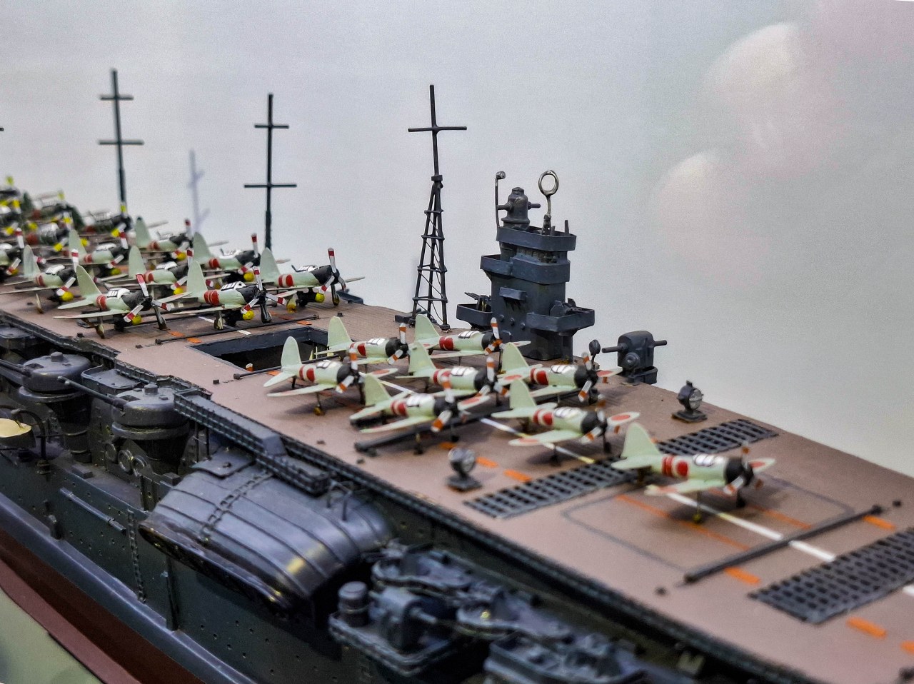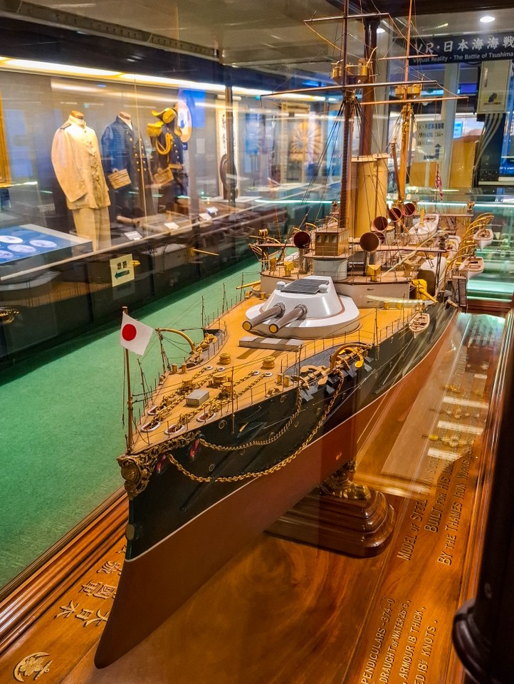 Na większości innych, niezliczonych w sumie planszach i tablicach znajdziecie mnóstwo ciekawych informacji również po angielsku. I zaprawdę powiadam wam, jeśli lubicie czytać to będziecie mieli sporo lektury. Ekspozycje może i są w starym stylu, dość statyczne, ale tony wiedzy z nich buchającej nie da się zignorować – trzeba mieć jedynie dystans do pewnej stronniczości (zaskakujące!) przekazywanych faktów. Zajrzeć można do admiralskiego salonu czy też mesy oficerskiej. Niesamowite wrażenie robi kolekcja modeli zawierająca chyba wszystkie jednostki, które wchodziły w skład Cesarskiej floty oraz obecnych Morskich Sił Samoobrony – gabloty z setkami jak nie tysiącami okrętów ciągną się na długości wielu metrów. Pomyślano też o najmłodszych, którzy w goglach VR lub na symulatorach mogą wcielić się w rolę sternika podczas bitwy pod Cuszimą (i oby jedynie w taki sposób kiedykolwiek wojny doświadczyli).
