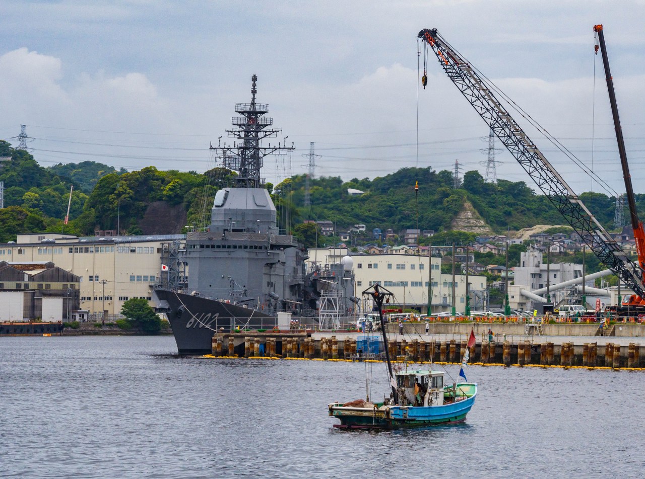 Rejs dosłownie zabiera nas w podróż między oboma bazami, przez bite 45 minut jeden z członków załogi zalewa pasażerów mnóstwem anegdotek o mijanych jednostkach, a pewnie i wielu innych ciekawych rzeczach – niestety mój zasób japońskiego pozawalał na wyłapywanie pojedynczych słów i pozostawało mi polegać na oczach. A te, naprawdę miały co podziwiać. 1 Flotylla Sił Eskortowych, 2 Flotylla Okrętów Podwodnych, 1 Dywizjon Trałowców, 15 Eskadra Niszczycieli, stacjonujący tu na stałe amerykański lotniskowiec „USS George Washington”… Oj, no można poczuć się jak w sklepie z zabawkami. By mieć najlepszy widok najlepiej wspiąć się na górny pokład i zając jedno z pierwszych miejsc.
