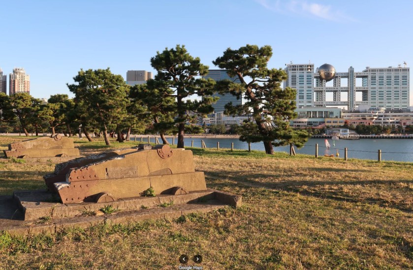 Jedno z dzisiejszych rozrywkowych centrów japońskiej stolicy, pełne całkiem futurystycznej zabudowy, galerii handlowych, restauracji, nostalgicznych gēmu sentā i muzeów nieoczywistych (jak Sōya pierwszy japoński lodołamacz; Retro Museum zabierające w podróż do ery Showa; Miraikan w stylu Centrum Kopernika; ale i totalnie japońsko osobliwe xd Unko Museum – muzeum kupki, Aralka pozdrawia!) swoje początki miało w XIX-wieku kiedy to w odpowiedzi na kurtuazyjną wizytę komodora Perry’ego, na wodach Zatoki Tokijskiej powstała grupa wysp-bastionów z bateriami dział (zwały się one Daiba), mających w przyszłości stanowić komitet powitalny dla kolejnych zachodnich gości. Pierwsze, wybudowane w ekspresowym tempie wyspy musiały zrobić niemałe wrażenie na powracającym Perrym, który trafiając na nie cofnął się aż do Yokohamy. Co ciekawe była to chyba jedyna okazja kiedy tamtejsze działa 280mm się przydały – do 1945 roku nie wystrzelono z nich ani jednego pocisku i powolutku rozpoczęto ich rozbiórkę.