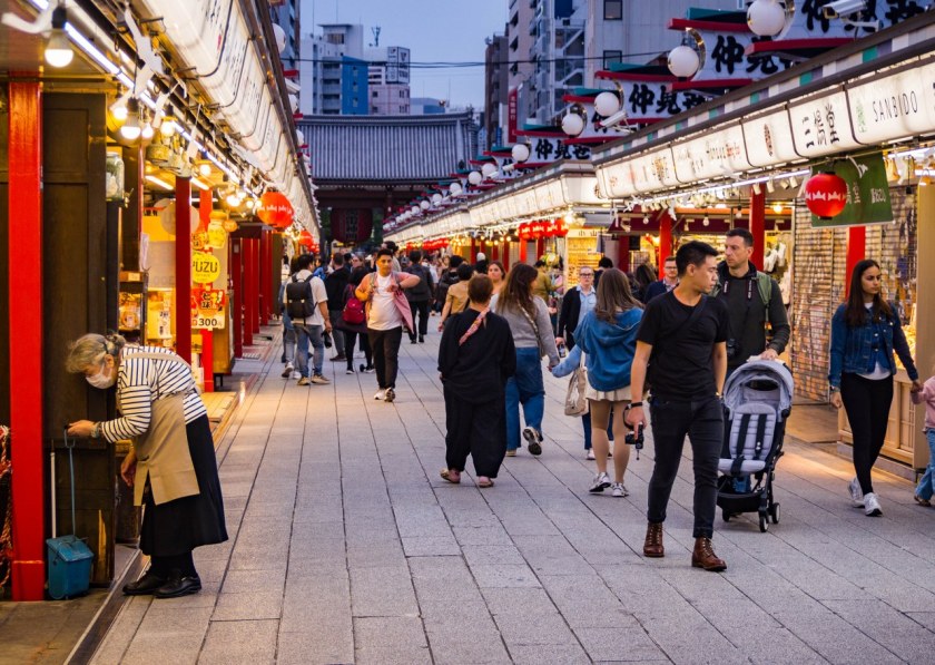 To bowiem w czasie siogunatu Tokugawa, wraz z coraz większą liczbą ludności miasta i rosnącą liczbą pielgrzymów, najbliższa okolica świątyni została obdarowana przywilejami zakładania przybytków mających służyć przybywającym. Powstały herbaciarnie, hale gdzie najsłynniejsi akrobaci i cyrkowcy urządzali swe przedstawienia i w końcu kramy, w których sprzedawano przekąski, ale i pamiątki. W ciągu setek lat wiele się zmieniło, herbaciarnie zostały zastąpione kolejnymi kramami, przez krótką chwilę kupców wyproszono a po przeorganizowaniu handlowej przestrzeni w jedną uliczkę zaproszono z powrotem. Finalnie po XX-wiecznych tragediach odbudowano ją w kształcie jaki znamy mniej więcej dziś. Tak więc, charakter uliczki tak naprawdę chyba wiele się nie zmienił – jedynie fakt, że w okresie Edo miejsce to odwiedzali co najwyżej pielgrzymi i podróżni z innych części Japonii a dziś są to ludzie z całego świata sprawia, że wydaje się ono jeszcze bardziej turystyczne. A może rzeczywiście takie jest? W ocenie tego czy w sklepach trafić można na tandetę czy ciekawe rzemiosło, czy streetfood jest dobry czy przeceniony rabini są podzieleni – czytałem tak wiele różnych opinii (Krupówski vibe!), że chyba po prostu trzeba przekonać się samemu – ba, jakoś nie jestem w stanie uwierzyć w maksymalnie negatywny PR tej uliczki.