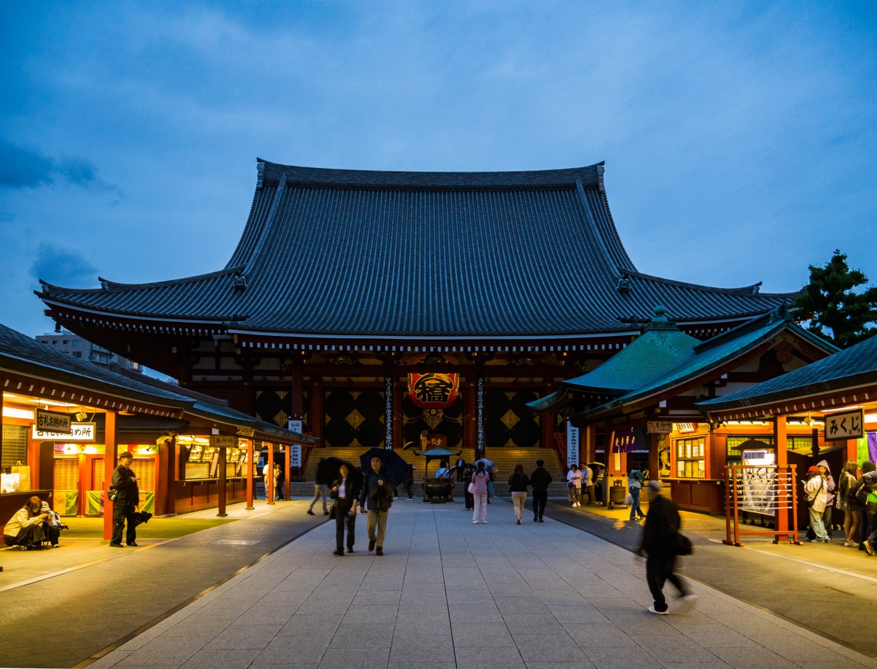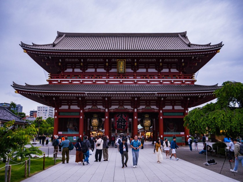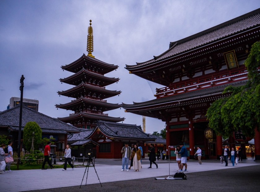 Pozwólcie, że zaczniemy ostatnim akapitem poprzedniego wpisu. Przed nami bowiem miejsce gdzie głowa wolna od natłoku myśli jak najbardziej się przyda: przed wami najbardziej emblematyczna z tokijskich świątyń, najstarsza (a jednak nowa), najbardziej znana i przyciągająca największe tłumy (blisko 30 milionów odwiedzających rocznie!), celebryta wbrew swej woli, ikona, za dnia tętniąca życiem, wieczorem (oraz wcześnie rano) spokojniejsza, pozwalająca uchwycić się w klimatycznych kadrach.