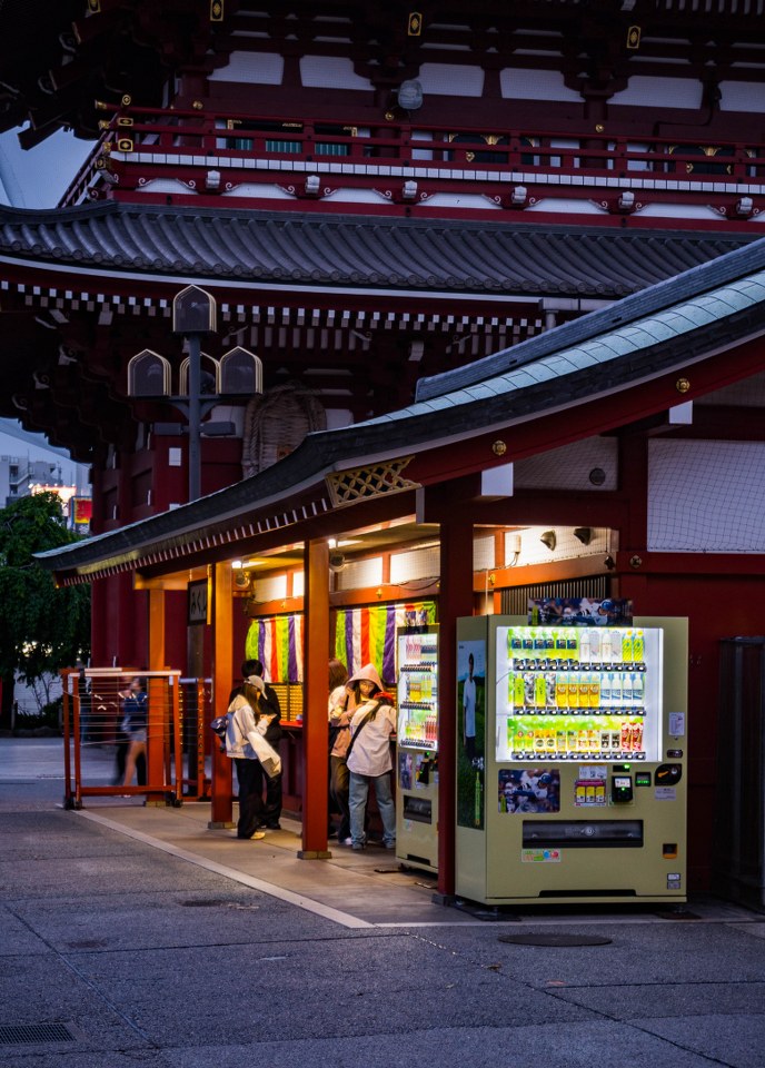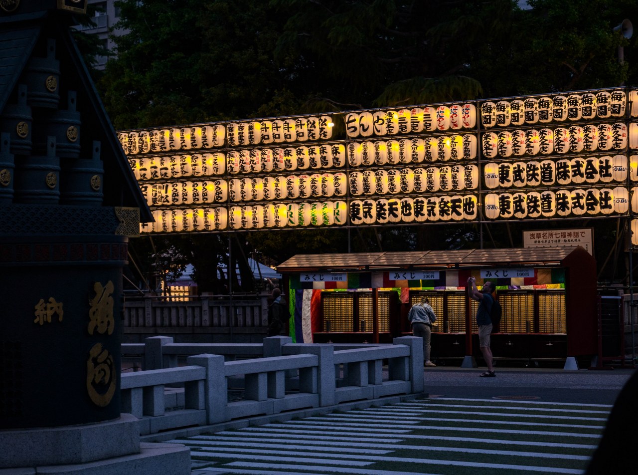 Kilka kroków wcześniej dokonać można i oczyszczenia wodą. Ablucja w temizuya to rzecz absolutnie normalna w chramach shinto, i tu nie powinna nikogo dziwić – pamiętajmy, że tuż obok Głównego Pawilonu świątyni znajduje się skromny chram Asakusa, w którym czczeni są legendarni już rybacy oraz ich mentor. Prawidłowe obmycie wodą w pawilonie ma więcej formalnych kroków i jeśli nie jesteście pewni co i jak to obserwujcie miejscowych – po wizytach w kilku chramach z pewnością będzie już wiedzieć. I tak, miałem świadomość, że chram czy świątynia o tej porze są już zamknięte a ja nie podążam Drogą Buddy i nie jestem również shinto, ale podczas całego wyjazdu dokonywanie obu rytuałów traktowałem dość naturalnie jako znak uszanowania miejscowej tradycji.