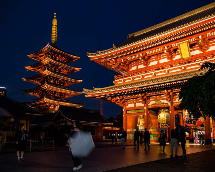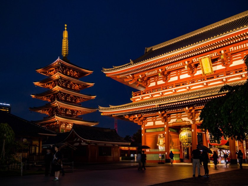 Cześć! Dziś zabiorę was do miejsca arcysławnego, odwiedzanego chyba przez większość przybywających pierwszy raz do Tokio turystów, do najsłynniejszej (a przez to najbardziej zatłoczonej) świątyni japońskiej stolicy, Sensō-ji. W poniższym niekontrolowanym potoku myśli zmierzymy się z jej sławą i historią, zaglądając doń tuż po zachodzie słońca… co przyniosło tak kilka plusów jak i minusów. Zapraszam!