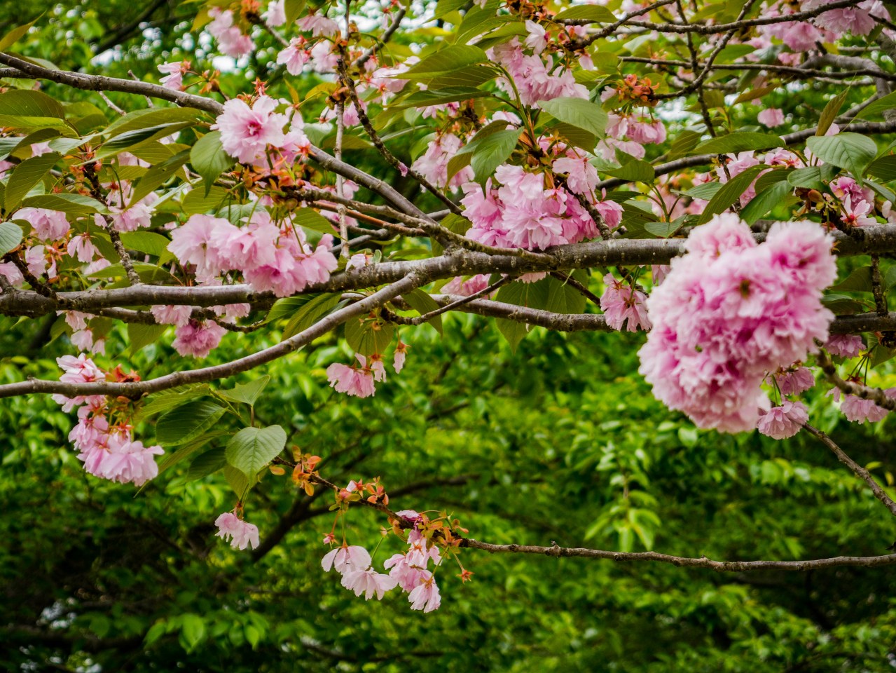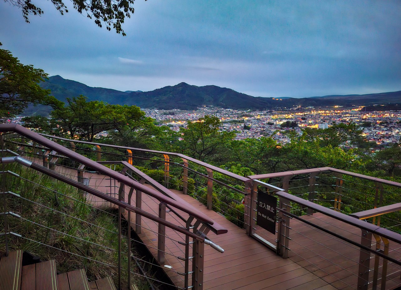 Na jednym ze zjazdów można zrobić przerwę i rozprostować kości w formie trochę innej niż jazda – niewielki wzgórek oferuje krótki cardio-spacer na platformę widokową, która de facto sama w sobie prezentuje się ciekawiej niż widoki jakie oferuje. W czerwcu kwitną tu rododendrony, a wcześniej wiosną na pagórku oraz w parku poniżej pięknie prezentują się sakury. I wiecie co? Chyba trafiłem na marudera, jedną jedyną wiśnię kanzan, której ostatnie kwiaty nie przeminęły jeszcze z wiatrem. Yokatta!