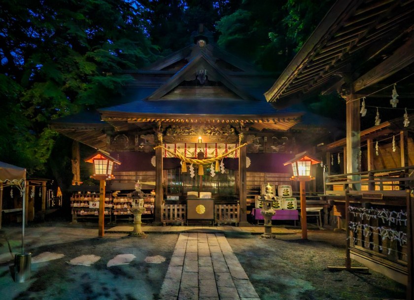 Schowany wśród drzew chram poświęcony jest Konohanasakuya-hime, córce Liczyrze… znaczy się Oyamatsumiego–Ducha Gór, bohaterce legend, oswajającej wulkaniczny żar, sprawującej władzę nad wodami jeziora, matce przeklętych i ulotnych jak płatki sakury dzieci. Chramy poświęcone Konohanasakuya-hime są niejako poświęcone samej świętej górze przez co zwykło się ją nazywać boginią góry Fuji.