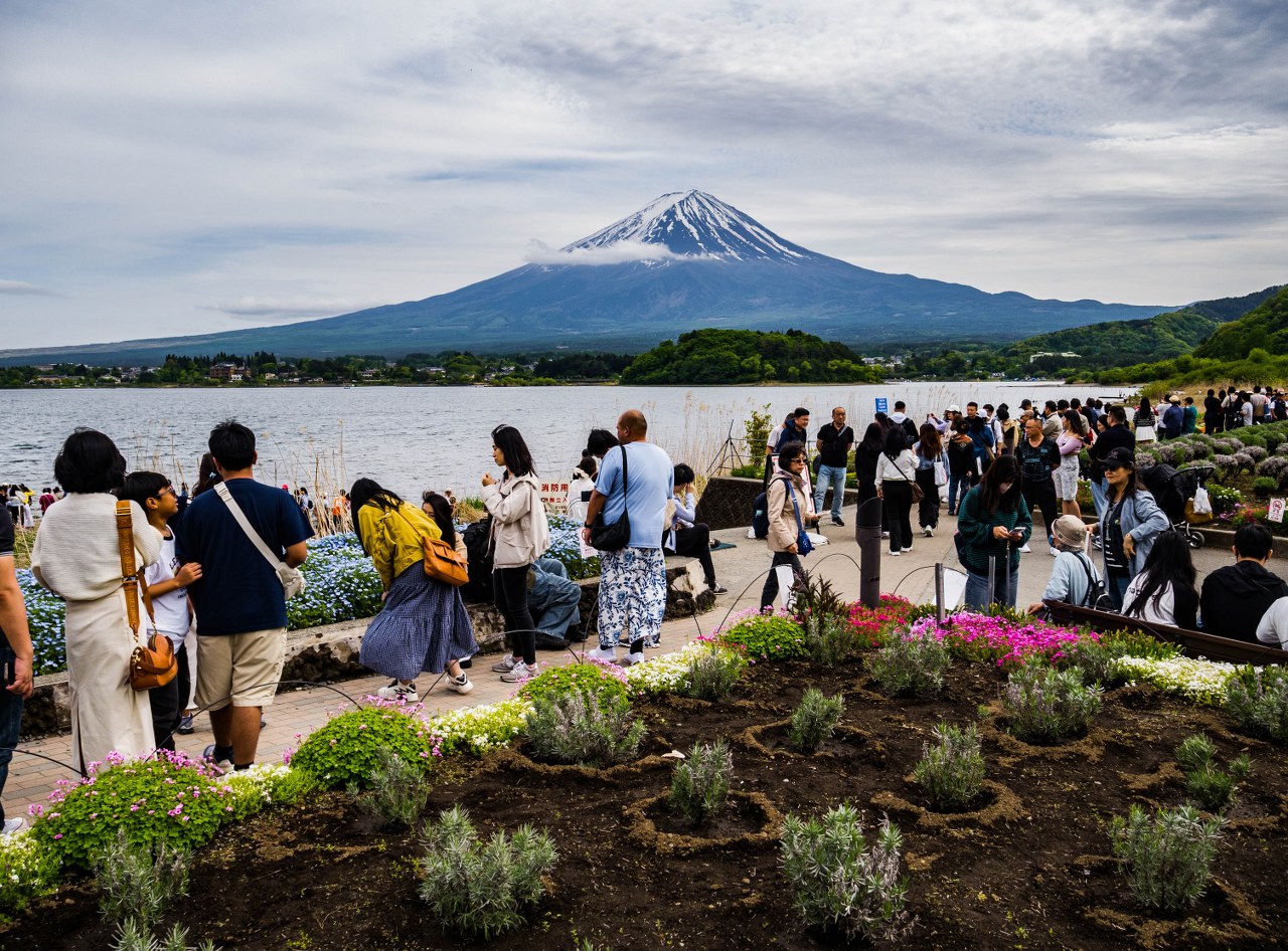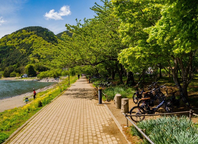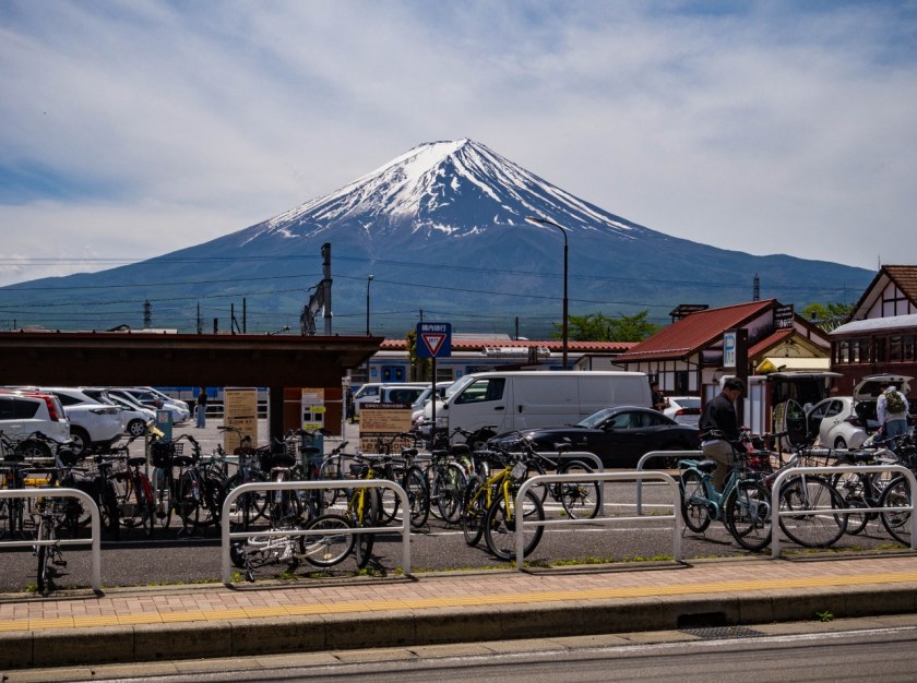 Fujikawaguchiko jest miejscowością niewielką, posiada jednak wszystko co czyni zeń idealną bazę wypadową do jeziora Kawaguchi jak i wielu innych ciekawych miejsc rozsianych na terenie Parku Narodowego Fuji-Hakone-Izu. Jest jak dojechać, gdzie się przespać, gdzie zjeść, gdzie zrobić zakupy (w końcu to tu znajdziecie najsłynniejsze konbini w Japonii), gdzie wypożyczyć rower, gdzie podziwiać Fuji-san. Na wyciągnięcie ręki są szlaki w góry (w tym niespełna godzina jazdy do Fuji Subaru 5th Station, jednego z popularniejszych punktów startowych podejścia na świętą górę), świątynie i chramy a i szukający kulturalnych aktywności znajdą coś dla siebie. Nic więc dziwnego, że miasteczko wraz z całym jeziorem jest jednym z najpopularniejszych celów jednodniowych wycieczek autokarowych z Tokio. Przed tłumami łatwo jednak uciec i najlepiej zrobić to na rowerze.