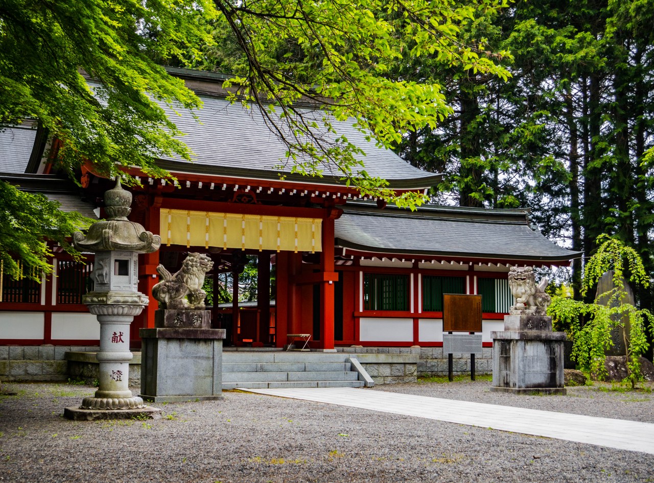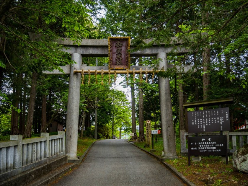 Historia chramu sięga 699 roku, dzisiejsze budynki rzecz jasna pochodzą z czasów dużo nam bliższych, XVII-wieczna hala główna, wybudowana pierwotnie na stokach wulkanu przeniesiona została w obecne miejsce całkiem niedawno, druga hala, w swoim kącie trwa od końca XIX stulecia. Na przestrzeni mijających wieków obecne jak i dawne budynki były świadkami historii wielkich i tych niegodnych wspomnienia, służąc wielu wielkim rodom, najbardziej chyba słynąc z poważania u rodziny Takedów i samego Shingena. Tego samego.
