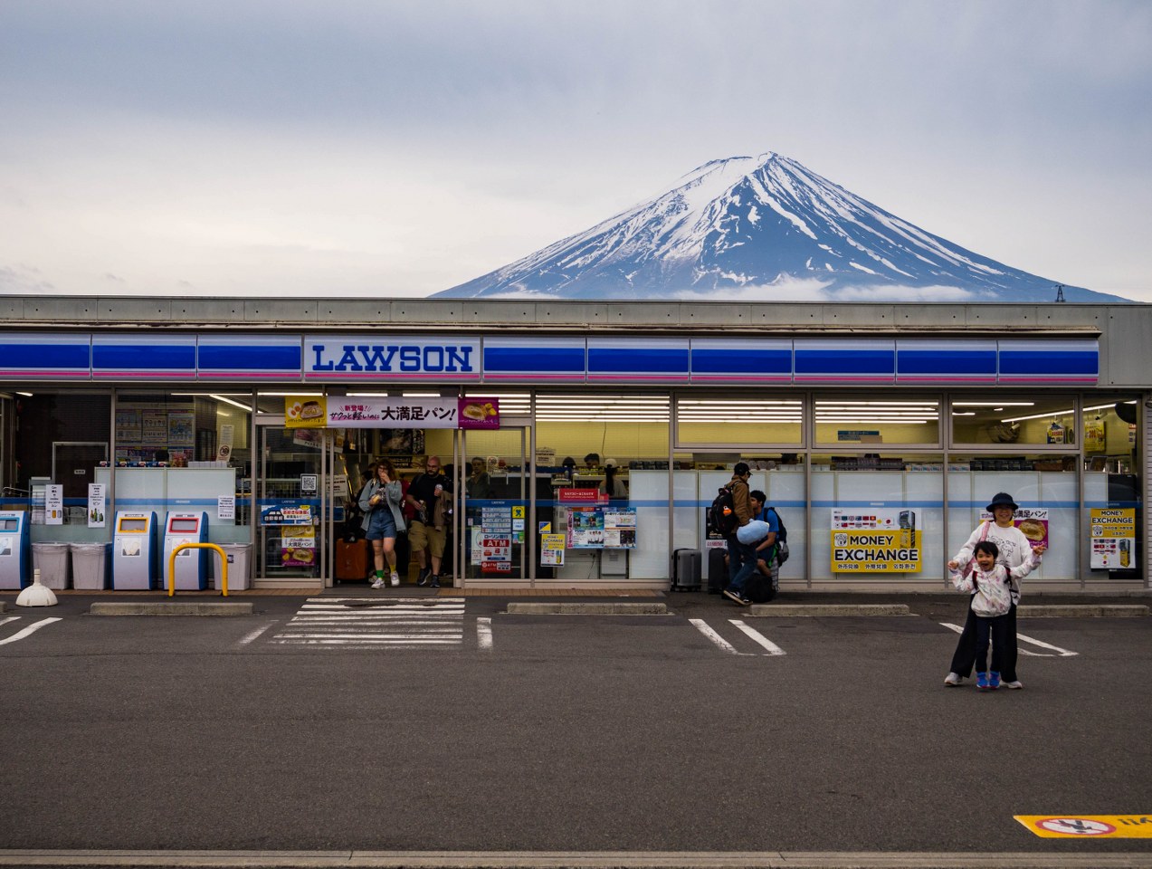 W końcu jest i on, najbardziej viralowy Lawson w Japonii, mekka instragramerów, jeden z wielu symboli problemu nadmiernej turystyki… a raczej tego jak niekiedy my jako turyści nie potrafimy zrozumieć prostych rzeczy. Bo też sprawa jest tu prosta. Mamy konbini, któremu za tło – o ile pogoda pozwoli – służy Fuji-san, rzecz to nawet ładna, przyjemna dla oka, i rozumiem dlaczego wiele osób chce zrobić tam zdjęcie. Czego nie rozumiem to jakieś lagi, które występują w niektórych głowach podczas próby zrobienia tychże zdjęć – blokowanie chodnika, stawanie na barierkach czy wbieganie na ulicę było tu swego czasu chlebem powszednim.