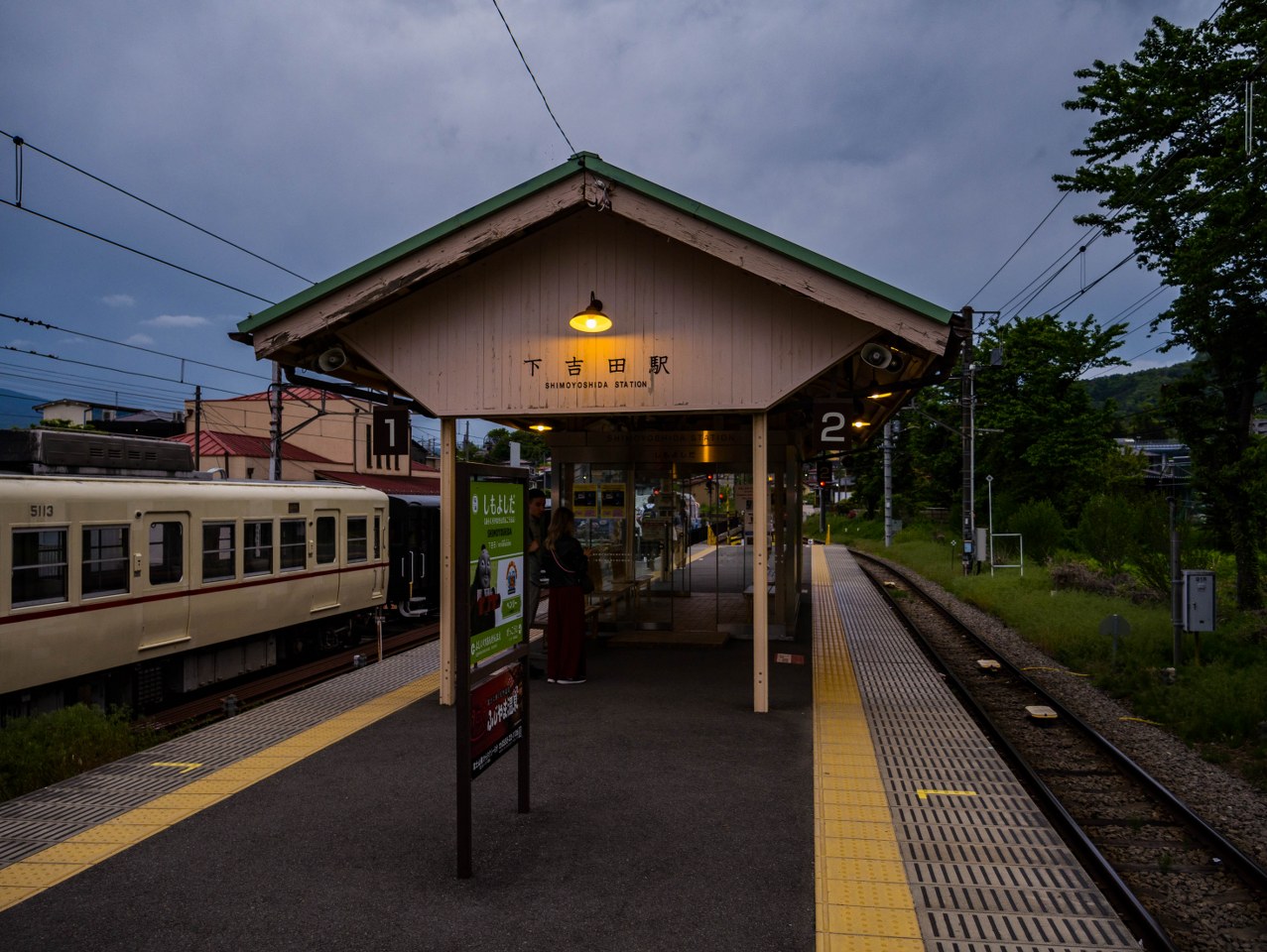 Wracając na pociąg do Fujikawaguchiko warto pamiętać, że po wyjściu z parku droga na stację nie jest wybitnie oświetlona i spaceruje się trochę jak w Silent Hill. Poza faktem, że na samej stacji było głośno jak cholera – nie wiem czy to cykady czy inne owady, ale potężna aria na tysiące „gardeł” była jedyna w swoim rodzaju.