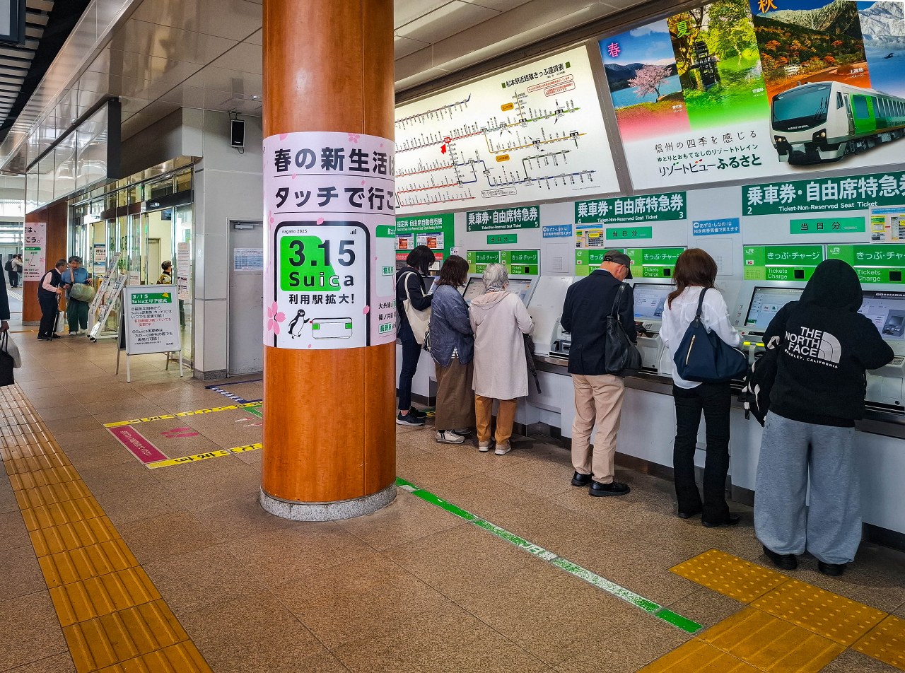 Sam z kolei startowałem znad jeziora Kawaguchi i wymagało to delikatnie większej gimnastyki, Fujikawaguchiko nie ma z Matsumoto żadnego bezpośredniego połączenia dlatego do wyboru są dwie opcje: autobus+pociąg lub pociąg+pociąg. W pierwszym przypadku najbardziej opłaca podjechać do Kōfu, gdzie można złapać wspomnianą już Azusę, w drugim motyw jest podobny tylko stacją przesiadkową jest Ōtsuki. Koniec końców wybrałem autobus (bilety z łatwością kupiłem w wieczór poprzedzający wyjazd) a i w Kōfu bez problemu znalazłem miejsce na najbliższy express do Matsumoto.