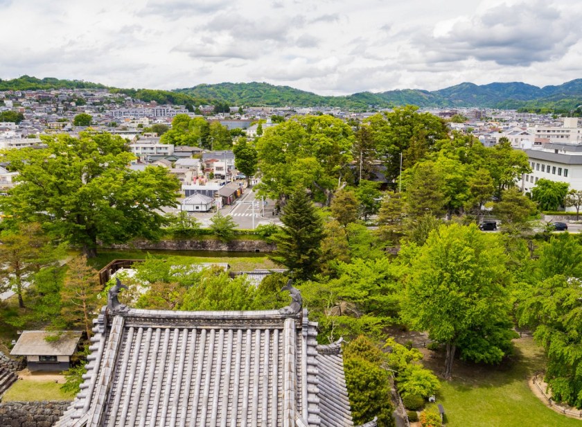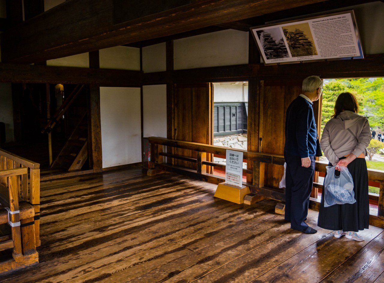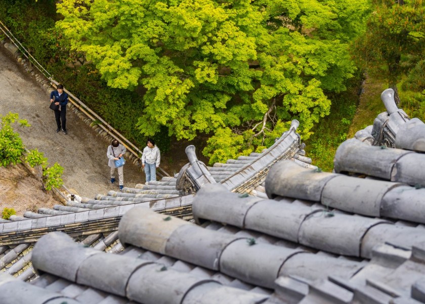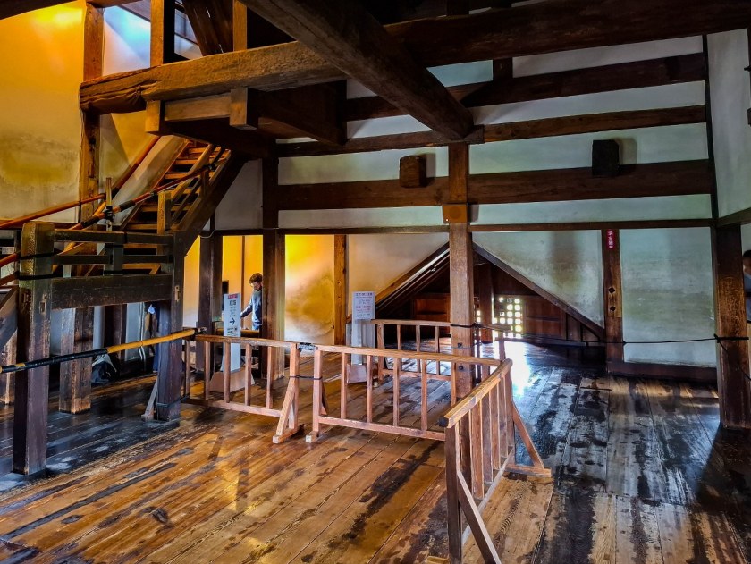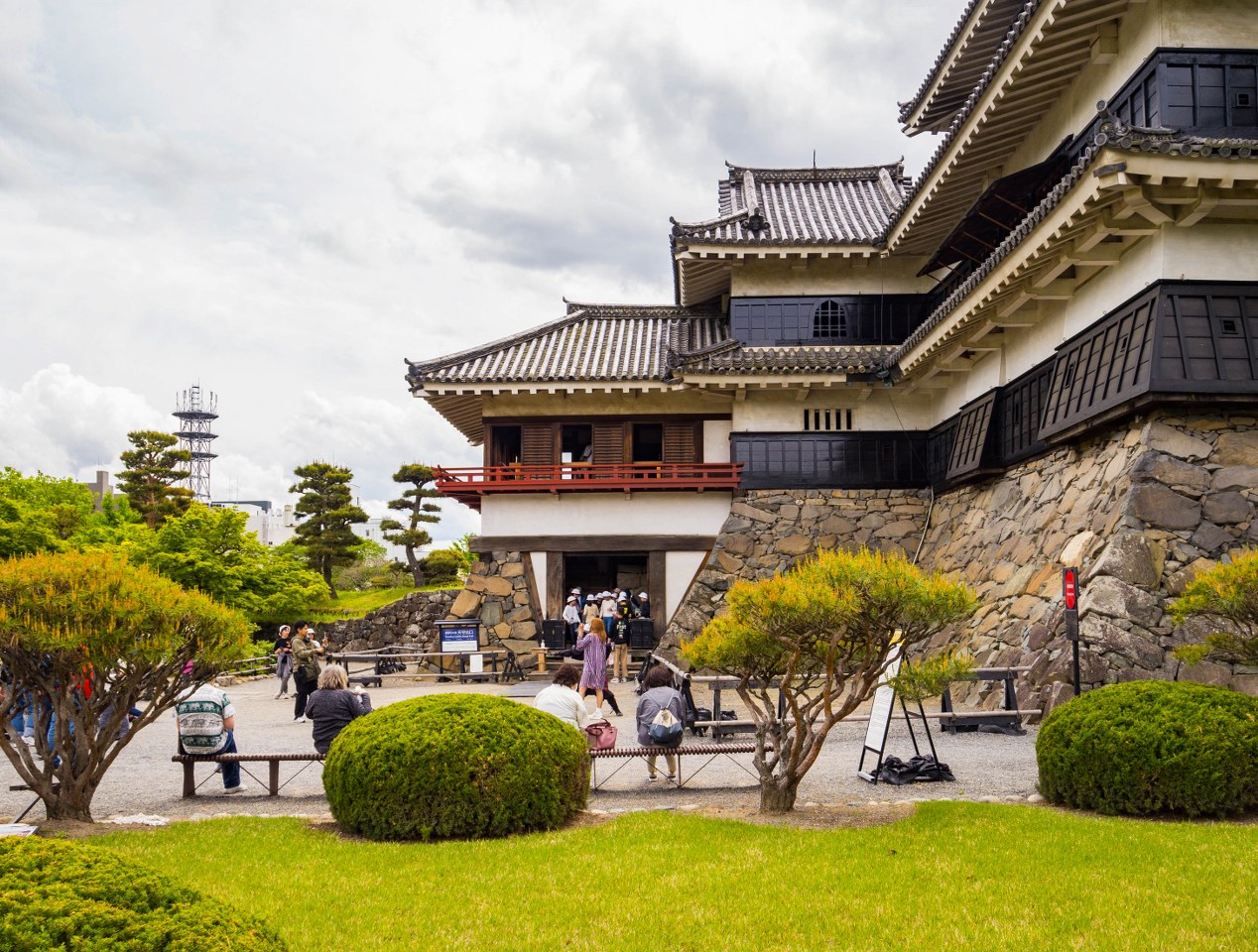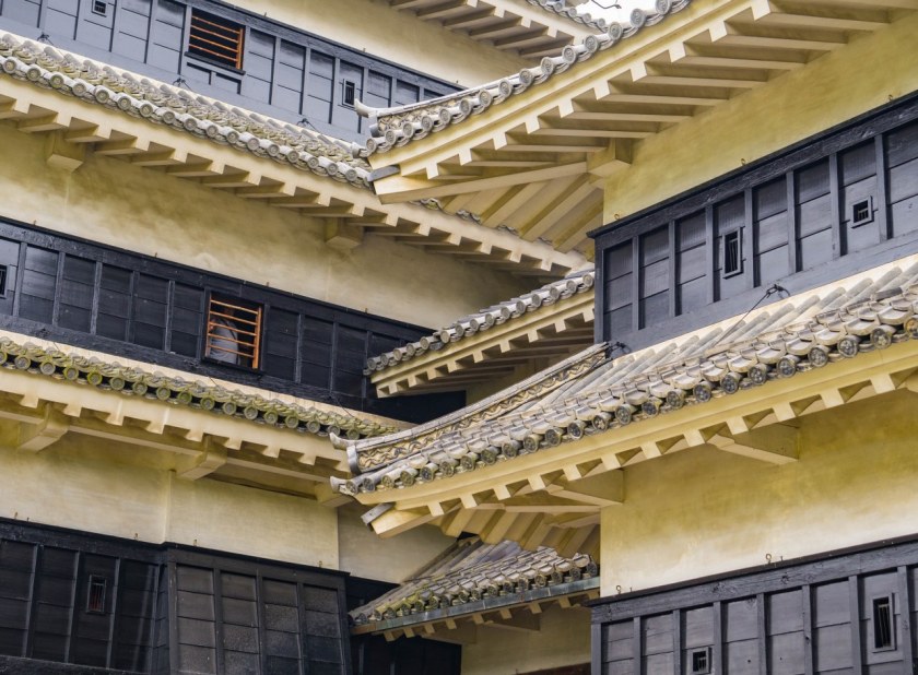 A niewiele brakowało i w jego miejscu oglądalibyśmy wielkie NIC. A w każdym razie na pewno nie zamek. Warownia korzenie ma XVI-wieczne, w swych najstarszych i najważniejszych elementach pamięta czasy przełomowe dla historii Japonii, ostatnie burzliwe lata okresu Sengoku, te nowsze powstały już za panowania siogunatu Tokugawa. Z łatwością da się zauważyć tę różnicę: stary zamek w tym obie wieże donżonowe powstawały w niespokojnym, pełnym przemocy czasie przez co jego charakter jest wybitnie warowny, obronny, niedostępny, z kolei lekko młodsza wieża Tsukimi powstała już w czasach spokojniejszych i wydaje się, że wręcz zaprasza w swoje podwoje.
