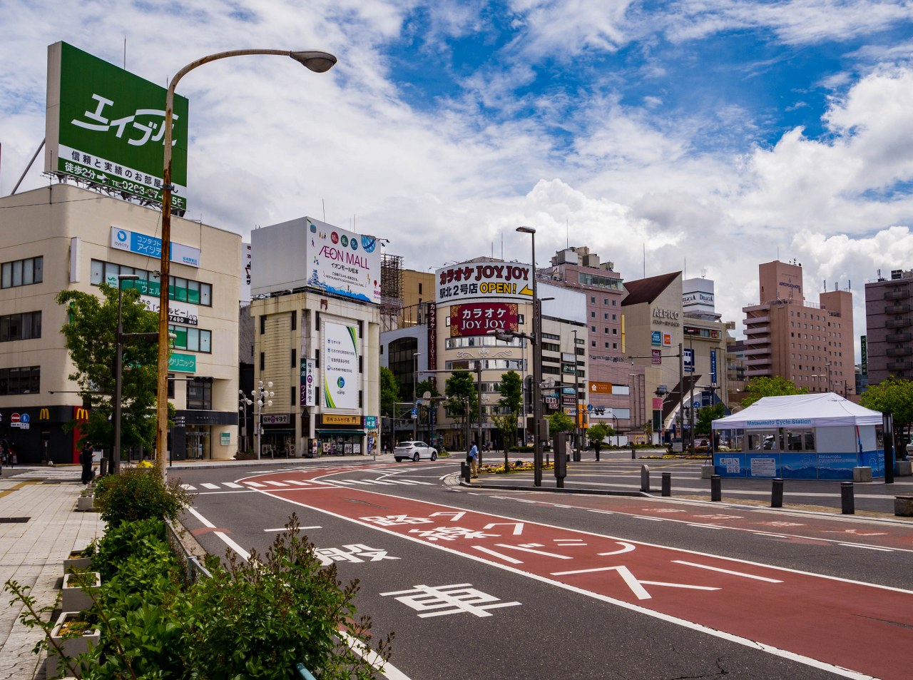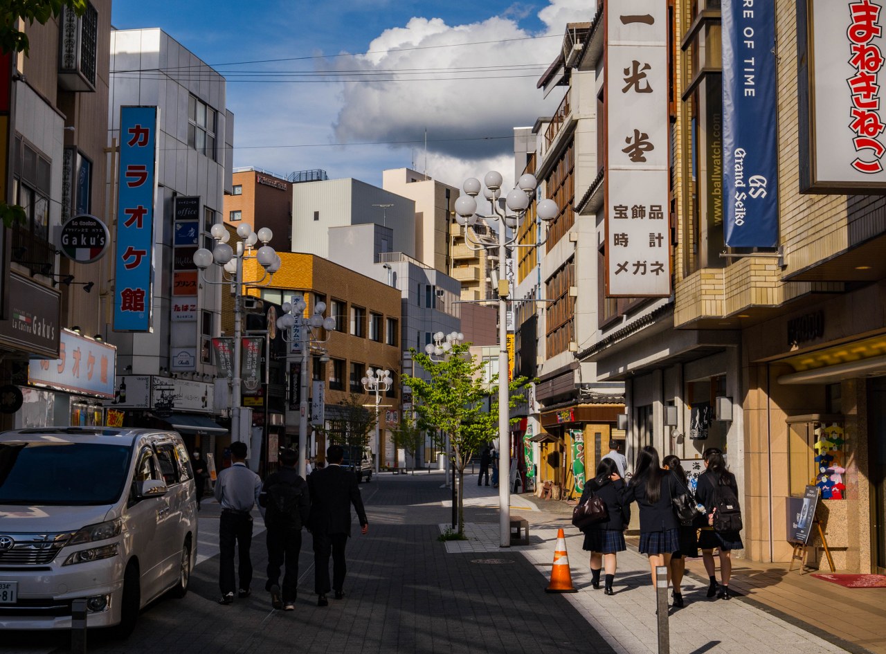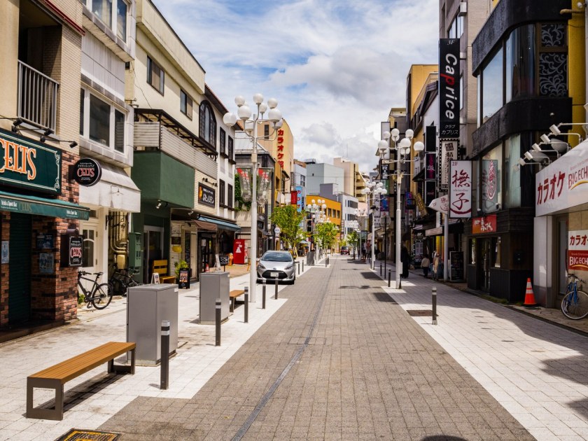 I tak po przeszło 3 godzinach jazdy dotarłem do Matsumoto. Tym co najbardziej zaskakuje jest spokój z jakim wita mnie miasto. Gwar dworca szybko ustępuje miejsca niesamowicie wręcz pustym uliczkom. Przydworcowe, wysokie budynki pełne są hoteli i sklepów a na odchodzących od nich ulicach nie brakuje knajpek – niby wszystkiego dużo, ale jakoś paradoksalnie kameralnie, bez tłumów jest jakoś tak fajnie, przyjemnie.
