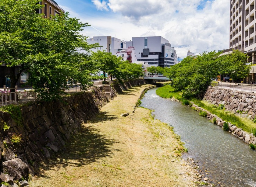 I tak spacerując wzdłuż Metoby dokonałem jednej z najgorszych decyzji podczas całej mojej obecności w Matsumoto – uznałem, że chwilowo nie warto przekraczać jednego z mostów by zajrzeć na ulicę Nakamachi, dawną ulicę handlową PEŁNĄ owych starych, magazynów w kratę. Wiecie, uznałem, że wrócę tam później, jak uporam się z resztą miasta. Najgorsza decyzja ever. Nie wróciłem bo spacer mnie pochłonął i jakoś powrót wyleciał z głowy. Ech. Do tego tematu jeszcze wrócimy a tymczasem ruszajmy dalej, ku największej atrakcji miasta!