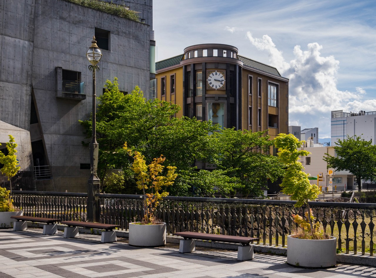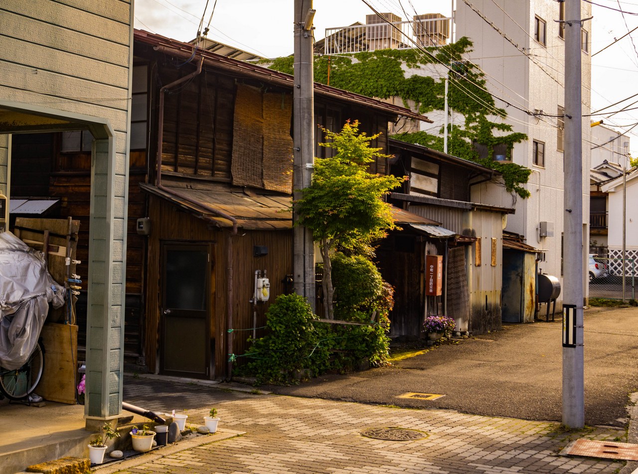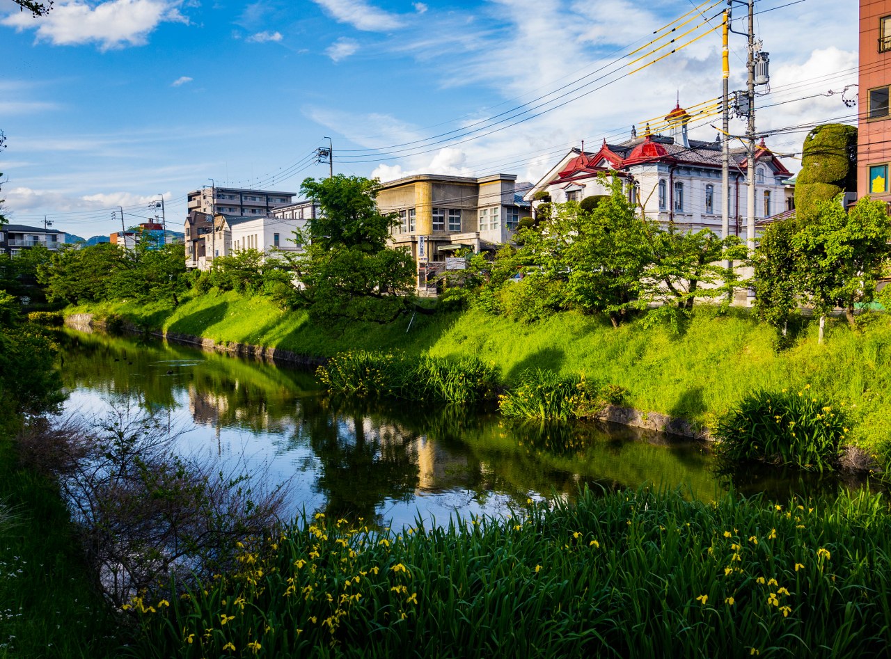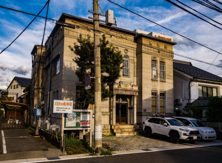 Jeśli wcześniejszy spacer zdarzało mi się określać mianem spokojnego tak teraz, na wschód od zewnętrznej fosy zamku (i ratusza) zaczął się już zupełny chill, pustawe uliczki, piękne popołudniowe słońce. Współczesna zabudowa tworzyła mozaikę z małymi sklepikami obitymi blachą i willami z czasów Taishō roman, okresu kiedy zachodnie idee na serio zaczęły przenikać do miejscowej sztuki, mody czy architektury. Niewielkie gmachy łączące w sobie japońską i europejską myśl stawały się siedzibami banków i innych urzędów i co ciekawe wiele z nich do dziś nie dość, że przetrwała to wciąż pełni podobne funkcje. I ich widok wielce był intrygującym.