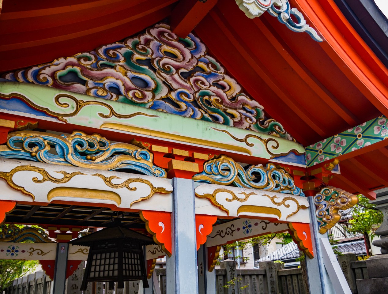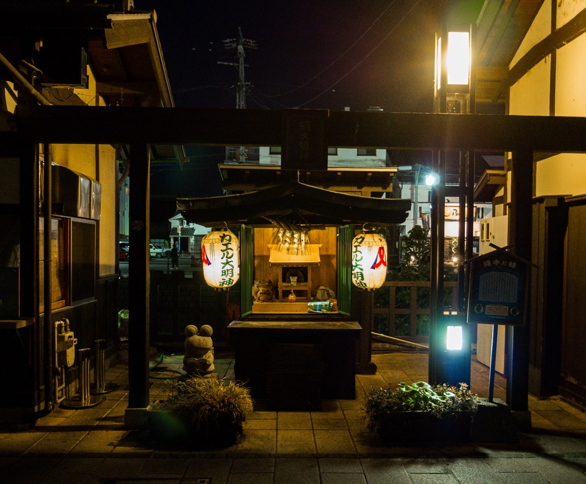 Nieopodal w labiryncie uliczek trafić można na sąsiadujące ze sobą buddyjską świątynię i shintoistyczny chram. Pierwsza, Zenkyuin jest dowodem na burzliwą historię i nie zawsze pokojowe współistnienie najważniejszych w Japonii religii. Przetrwałą jednak antybuddyjskie nastroje początku okresu Meiji i po dziś dzień służy miejscowej społeczności. I wiecie co? Odwiedziłem na tym wyjeździe wiele świątyń, ale tak cudownych, ekspresyjnych rzeźb Raijina i Fujina jak tutaj to nie spotkałem nigdzie indziej. Już dla samego tego faktu cieszę się, że tu zbłądziłem.