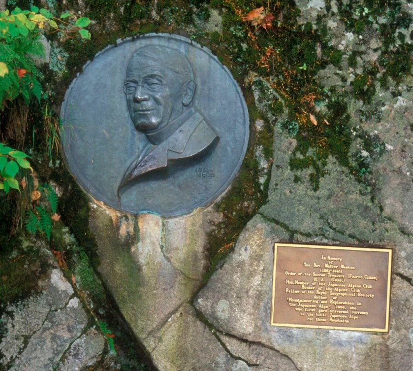 Wysiadając z pozostałymi, pierwszymi tego dnia przybyłymi, myśli uciekają 200 lat wstecz, podobne rozkminy mam w wielu miejscach w górach Polski, Niemiec czy Czech. 200 lat, niby niedużo a jednak dla turystyki górskiej cała wieczność, czas kiedy sukcesywnie, krok po kroku, góry z dość niedostępnych zakątków przeistoczyły się w miejsca gdzie tysiące ludzi spędza wolny czas. Podobnie jak w Europie, japońskie otwarcie się gór na turystykę nastąpiło w XIX-wieku. Kamikochi, wówczas dość dzikie, było domem dla niewielu, pojedynczych drwali, myśliwych, ale i okazjonalnie przewodników. Kamonji Kamijo był jednym z nich, był też tym, który oprowadził po dolinie, jak i pobliskich szczytach jegomościa dla japońskiego alpinizmu wielce zasłużonego, Anglika Waltera Westona. Ten, zachwycony okolicznościami przyrody miał z pełnym przekonaniem ochrzcić je mianem Japońskich Alp, nazwą zasłyszaną wcześniej u kolegi po fachu. I choć nazwa Nihon Arupusu (zbiorcza dla trzech pasm nań się składających) się przyjęła to pamiętajmy, że Północne, Centralne i Południowe Alpy to tak naprawdę Góry Hida, Kiso i Akaishi. Kamikochi jest częścią tych pierwszych.