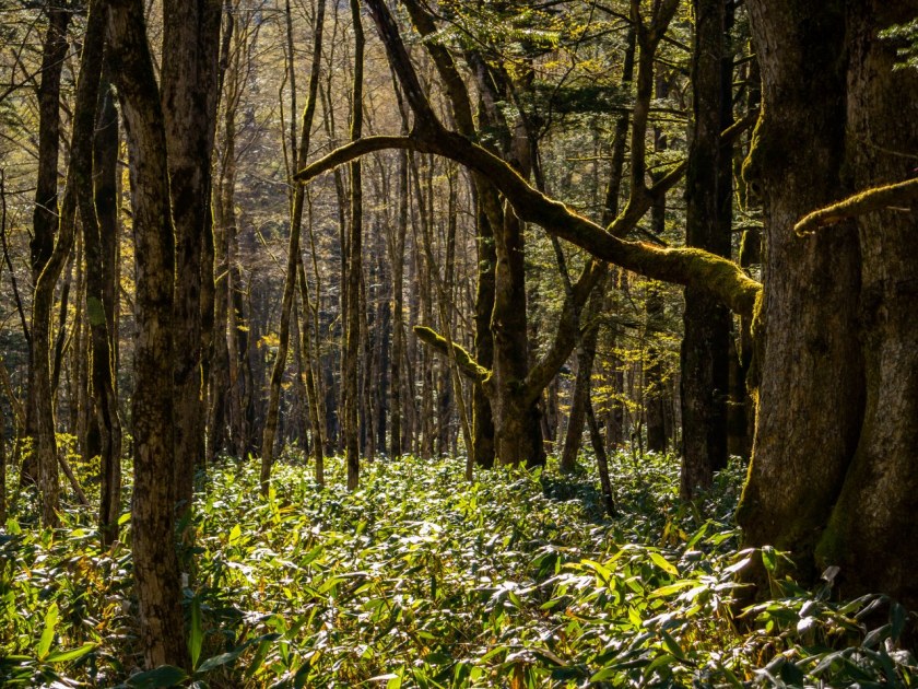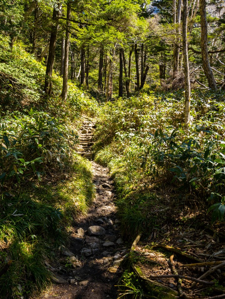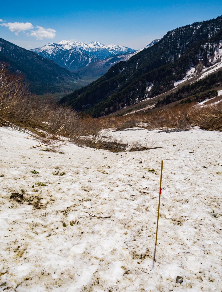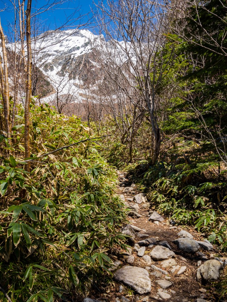 Niezaprzeczalnym atutem doliny jest to, że prócz sielskości nad rzeką jest też bramą do Północnych Alp Japońskich i oferuje multum możliwości ruszenia w wyższe partie gór, z wysokości 1500 metrów bardzo szybko można przenieść się na szczyty sięgające od 2000 do nawet 3000 metrów. Decyzję o takim właśnie lekkim trekkingu podjąłem bez większego zastanawiania się, jedyne co zaprzątało moje myśli to pytanie: jak dużo śniegu zalega powyżej 2000 metrów. Szlak do schroniska Dakesawa udzielił bardzo dokładnej odpowiedzi na to pytanie.