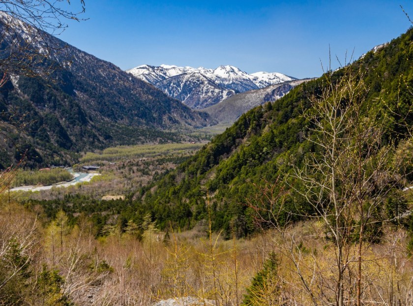 Kamikochi to arcypiękna górska dolina, położona na wysokości 1500 metrów, przez 15 kilometrów towarzysząca rzece Azusa, wartko sunącej pomiędzy wysokimi nawet i na 3000 metrów pagórami Północnych Alp Japońskich. Jedna z najpopularniejszych dolin japońskich gór (w ubiegłym roku odwiedzona przez 1 600 000 turystów) nie potrzebuje dużo czasu by rozwiać wszelkie wątpliwości co do słuszności swej renomy. To idealne miejsce tak dla tych, którym wystarczy nieśpieszny spacer wzdłuż rzeki połączony z podziwianiem górujących z prawa i lewa szczytów, jak i dla tych, którzy dolinę traktują jak punkt startu dla trekkingu w wyższe partie gór – a rozsiane po grzbietach schroniska i pola namiotowe pozwalają na naprawdę długie szwendanie (pobawcie się google map by zobaczyć widoki spod schronisk, cudo).
