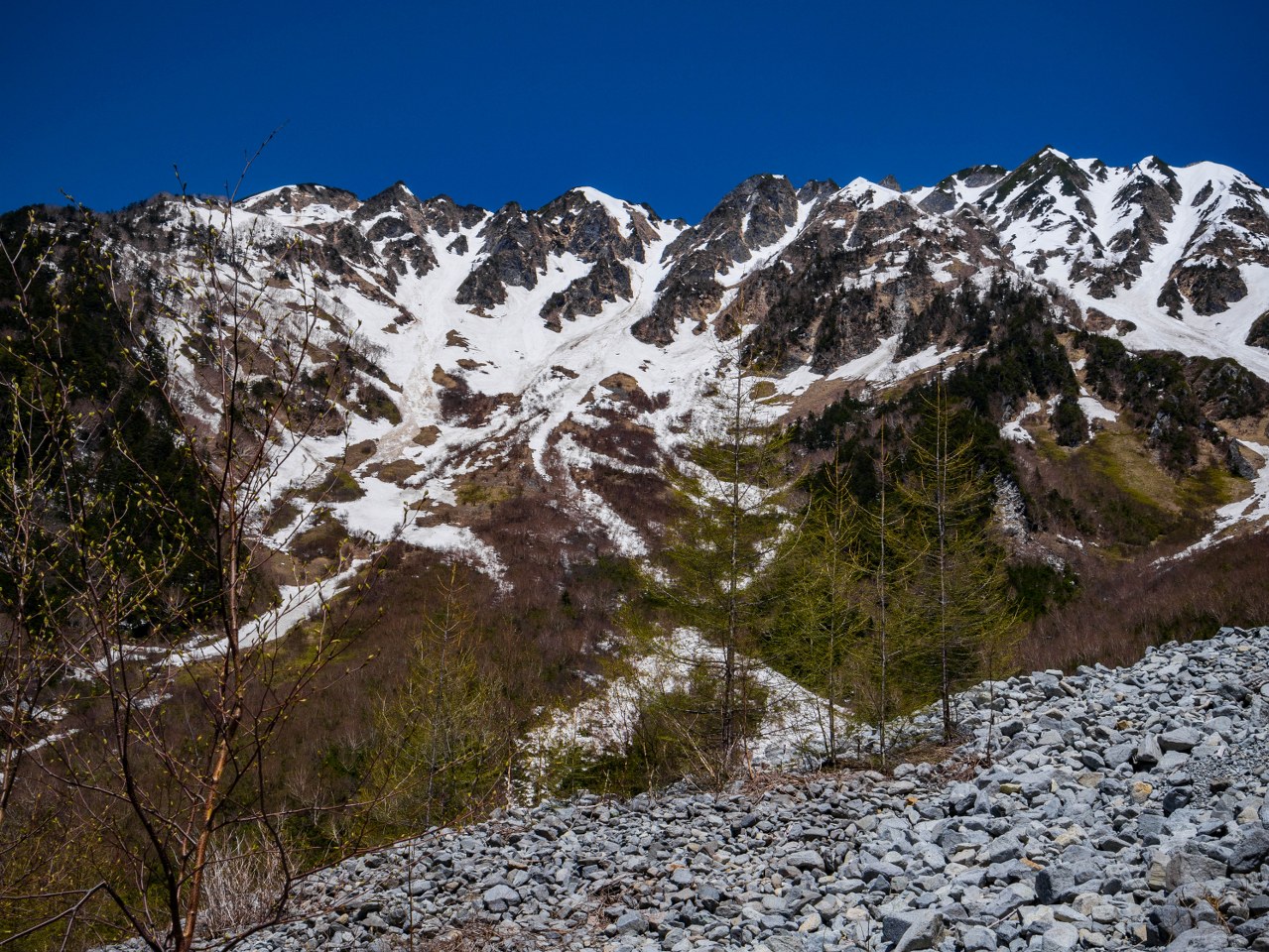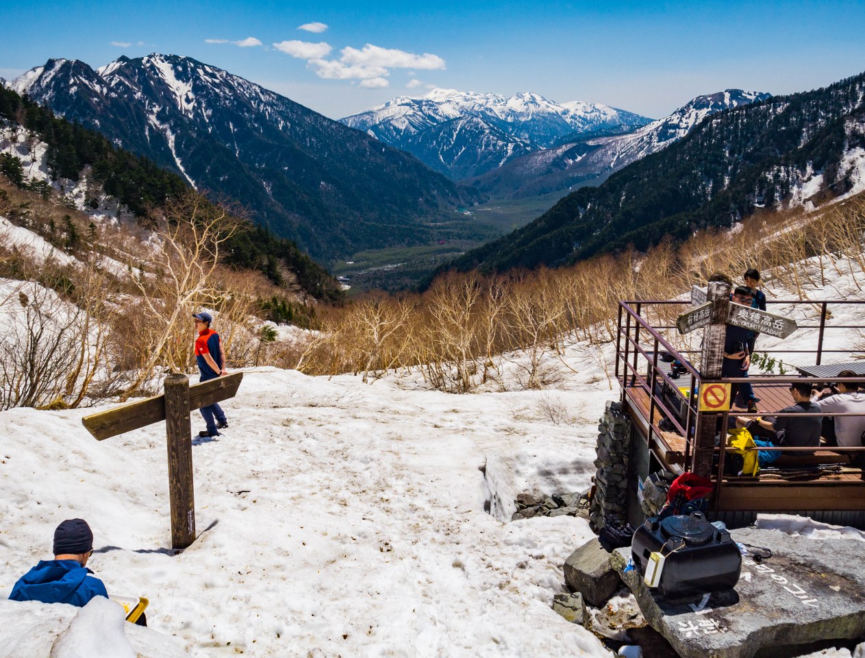 Niezaprzeczalnym atutem doliny jest to, że prócz sielskości nad rzeką jest też bramą do Północnych Alp Japońskich i oferuje multum możliwości ruszenia w wyższe partie gór, z wysokości 1500 metrów bardzo szybko można przenieść się na szczyty sięgające od 2000 do nawet 3000 metrów. Decyzję o takim właśnie lekkim trekkingu podjąłem bez większego zastanawiania się, jedyne co zaprzątało moje myśli to pytanie: jak dużo śniegu zalega powyżej 2000 metrów. Szlak do schroniska Dakesawa udzielił bardzo dokładnej odpowiedzi na to pytanie.
