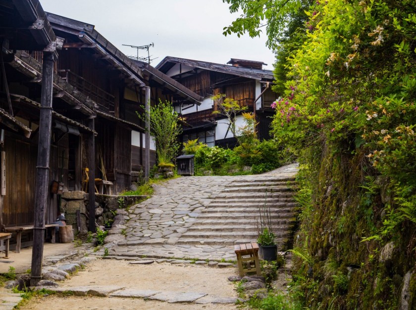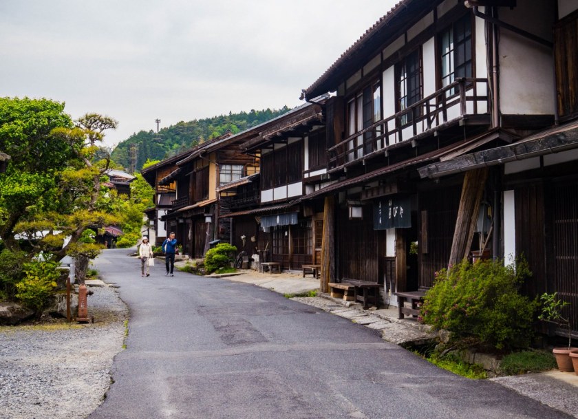 Wzdłuż każdej z dróg powstawały stacje pocztowe (shukuba), oferujące podróżnym (tak daimyo, dworzanom z Kioto, samurajom jak i handlarzom i zwykłym podróżnym) pełen wachlarz niezbędnych udogodnień – spanko, jedzonko, towarów magazynowanko. Nakasendo liczyło sobie około 530 kilometrów, na których to powstało 69 takich stacji, nierzadko rozwiniętych później w całe miasteczka. Dziś, wiele z nich – co nie dziwi – nie przypomina już stylowych, wciśniętych w górskie doliny małych stacji. Dynamiczny, powojenny rozwój Japonii pochłonął wiele z dawnego dziedzictwa, jest jednak kilka takich miejsc, gdzie nie warto się pałętać zachowano ten niegdysiejszy klimat a drewniane domy okresu Edo zapraszają na spacer wyjątkowo urokliwy – w Magome i Tsumago o mocno turystycznym charakterze, w wielu innych miasteczkach zdecydowanie bardziej surowy. Te najpopularniejsze, najlepiej zachowane odcinki przyciągają wielu jedno-dwu-trzydniowych turystów, znajdują się też i tacy, którzy mozolnie, w skupieniu pokonują cały szlak… no w każdym razie to co z niego przetrwało.