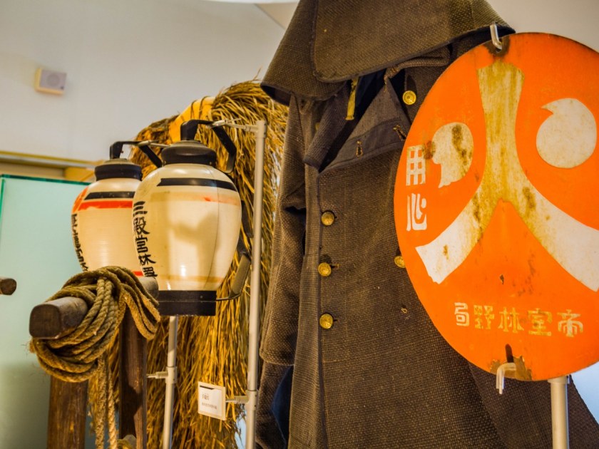 Muzeum Nagiso-machi skupia się na historii nie tylko miasteczka, ale i całej doliny Kiso. Całkiem sporo miejsca poświęca tematowi odbudowy i ochrony charakteru Tsumago – podróż przez kolejne lata i działania miejscowych, pozwala zrozumieć poświęcenie dla idei ocalenia miasta takim jakim było. Fajne to miejsce, niewielkie, dwupiętrowe i dość klasyczne w formie, ale bardzo treściwe. Wakihonjin, muzeum oraz Honjin, główny zajazd (nieczynny podczas moich odwiedzin) otwarte są codziennie od 9.00 do 17.00 (za wyjątkiem 3 ostatnich dni w roku) – można odwiedzać je na osobnych biletach, ale najlepiej zrobić to na łączonych 2w1 lub 3w1, o czym przeczytacie tutaj.