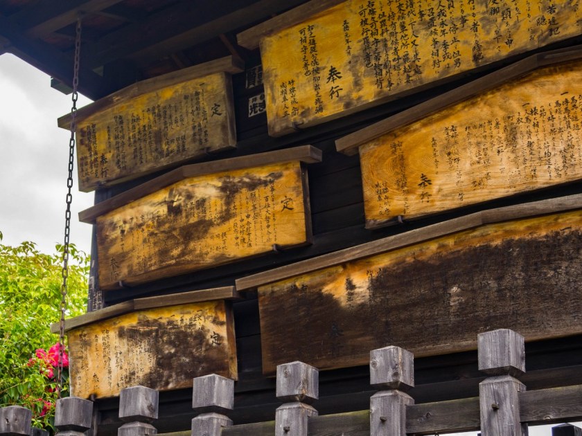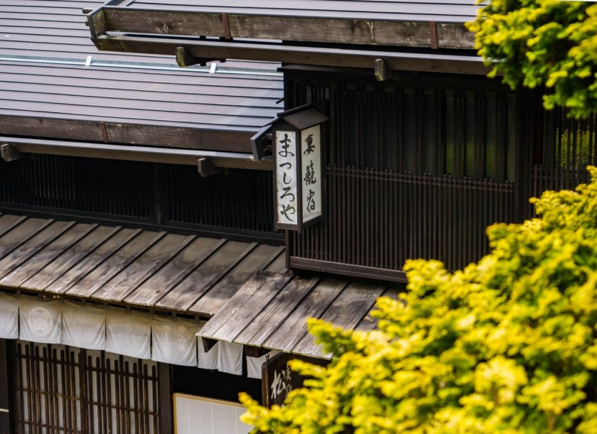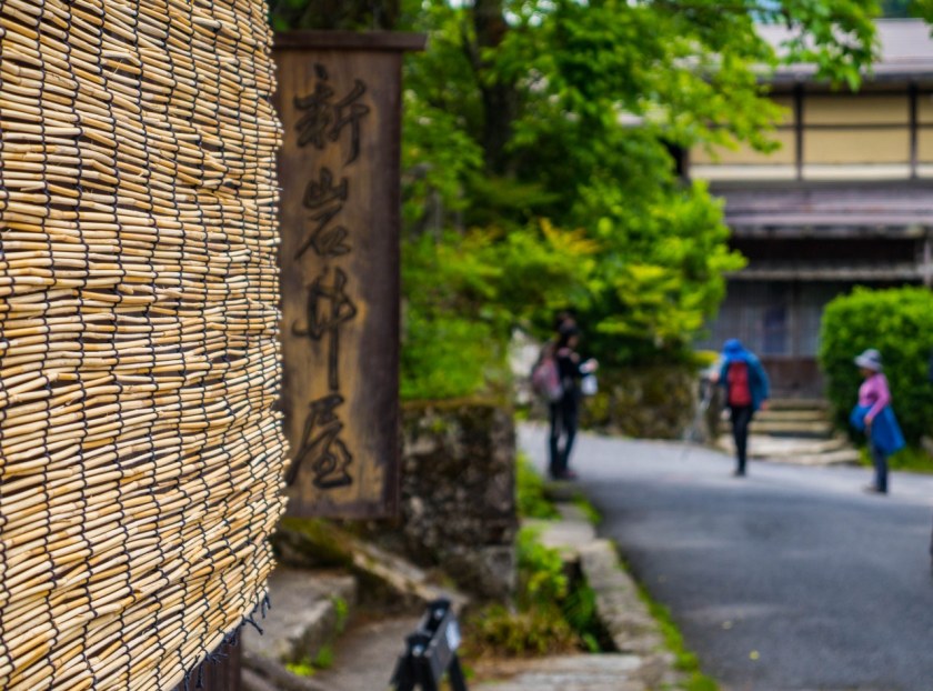 Granicę historycznego Magome stanowi mijana już droga nr 7 i ciągnące się wzdłuż niej słupy energetyczne – centrum miasteczka, podobnie jak w Tsumago jest wolne od tego współczesnego symbolu Japonii. Przy jezdni wznosi się cudownej urody zajazd, restauracja serwująca makaron soba – jeśli smakuje on tak samo jak wygląda budynek to zasługuje na gwiazdkę Michelina. Zaraz obok miejsce nadzwyczaj ważne dla dawnych społeczności, Kōsatsu, drewniana tablica z ogłoszeniami, nakazami, zakazami zleceniami na potwory…. wróć. Kōsatsu były kluczowym elementem w kontaktach sioguna ze swymi poddanymi i warto było znać treść informacji nań się znajdujących.