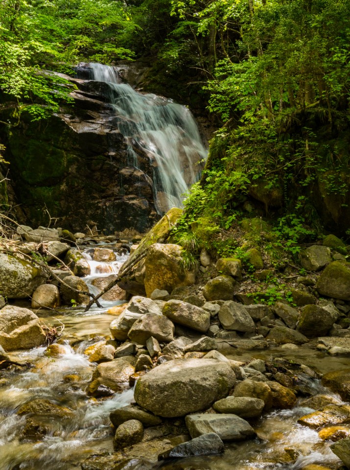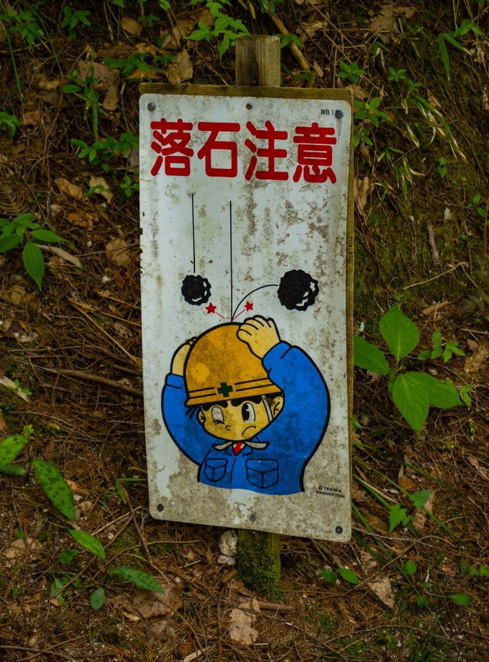 Drzewa drzewami, ale absolutnie nie można nie zahaczyć o dwa wodospady, Odaki i Medaki jeden delikatny, drugi dość wartki, rozlewający się szeroko. Jak często w Japonii bywa, jeden z nich przynależy pierwiastkowi męskiemu, drugi żeńskiemu – łatwo odgadnąć, który któremu. Klimatyczne i ładne miejsce, mające już za sobą debiut literacki, i to nie byle jaki bo w powieści o Musashim Miyamoto, tak, tym legendarnym. To tu, w końcu spotykam na szlaku więcej niż jedną osobę. Swoją drogą, niby powinienem już się do tego przyzwyczajać, ale wciąż zadziwiało mnie to jak nawet w środku lasu da się znaleźć malutkie toalety, pomocna sprawa 😀
