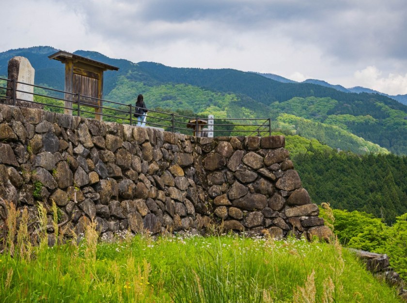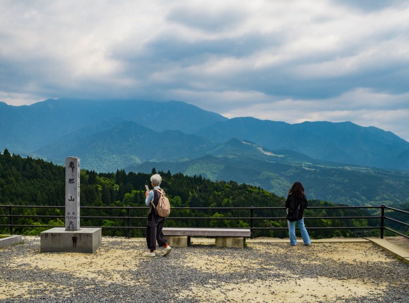 Na jej końcu, przy drodze nr 7 znajduje się piękny punkt widokowy, Jinbakami Observatory, z poziomu ulicy wyglądający jak kamienny fundament japońskich zamków, tylko, że bez zamku ;p Piękne widoki się stąd rozpościerają, jest opadające wraz ze stromym zboczem Magome, dalej poletka ryżowe niżej w dolinie a na horyzoncie szalenie zielony, ale chmurzący się masyw góry Ena.