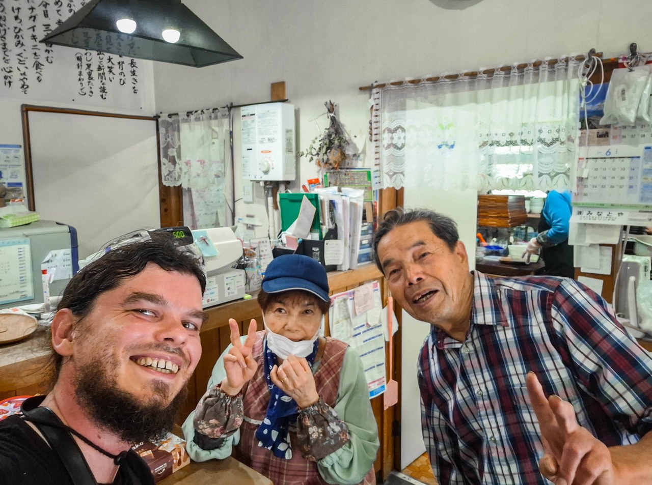 I nie chodzi tu o smaczne jedzenie i chłodne piwo, które przy coraz wyższej temperaturze było jak znalazł. Nie, największym plusem przybytku byli jego właściciele (i ich znajomi, i inni odwiedzający), niezwykle sympatyczni i z sercem na dłoni. Okazało się bowiem, że ruszając dalej zostawiłem tam plecak, i o fakcie zorientowałem się prawie godzinę później na stromych uliczkach Magome. Wtedy nie wiedziałem jeszcze, że plecak został w zajeździe, ale tak przypuszczając ruszyłem z powrotem. Niestety by do zajazdu wrócić trzeba pokonać najbardziej stromy fragment szlaku. Kiedy zziajany dotarłem na miejsce okazało się, że moim plecakiem nie dość, że się zaopiekowano to dodatkowo na miasto wysłano kilka osób, których zadaniem było znalezienie mojej skromnej osoby. Wysłani na poszukiwania znajomi zostali poinformowani o moim powrocie, ale każdy z nich podjechał z powrotem do zajazdu by z uśmiechem na twarzy uścisnąć mi dłoń. Widząc pot ściekający mi z czoła napojono mnie chyba litrem wody a pokłonom, podziękowaniom i uśmiechom nie było końca – w całym tym zamieszaniu, ze stresu chyba, nawet mój początkujący japoński był zaskakująco płynny i chyba zrozumiały xd. No kurczę, wiadomo, że to przykład anegdotyczny, ale absolutnie wpisujący się w obraz Japonii jako kraju, gdzie zgubić coś nie oznacza stracić to bezpowrotnie.