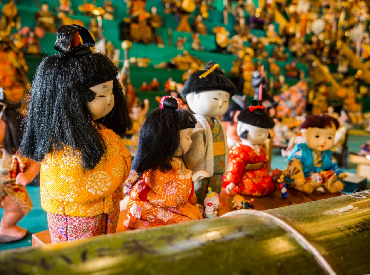 Po drodze czeka na was jeszcze ot choćby zajrzenie do Fureaikan, świątyni Kotokuji, bądź też dawnej szkoły podstawowej z czasów Meiji. Fureaikan, to pawilon w którym można odpocząć, często też trafić tam można na jakąś wystawę – w maju były to setki laleczek hina, najpewniej biorących udział w marcowym hinamatsuri, Dniu Dziewcząt. Natomiast by dotrzeć do świątyni i szkoły trzeba wdrapać się na niewielkie wzgórze, widok z góry jest całkiem fajny. Kotokuji w swych najstarszych elementach pamięta czasy jeszcze sprzed Nakasendo, a świątynna podłoga, podobnie jak w zamku Nijo w Kioto słynie z rozśpiewanego usposobienia, Uguisu-bari, słowiczej podłogi o wyjątkowej, wymyślnej konstrukcji, gdzie każdy krok pociąga za sobą dźwięki przypominające ćwierkanie wierzbówki. Idealny system przeciwko niespodziewanym gościom. Tego się tutaj nie spodziewałem.