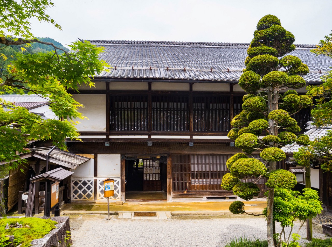 Granicę historycznego Magome stanowi mijana już droga nr 7 i ciągnące się wzdłuż niej słupy energetyczne – centrum miasteczka, podobnie jak w Tsumago jest wolne od tego współczesnego symbolu Japonii. Przy jezdni wznosi się cudownej urody zajazd, restauracja serwująca makaron soba – jeśli smakuje on tak samo jak wygląda budynek to zasługuje na gwiazdkę Michelina. Zaraz obok miejsce nadzwyczaj ważne dla dawnych społeczności, Kōsatsu, drewniana tablica z ogłoszeniami, nakazami, zakazami zleceniami na potwory…. wróć. Kōsatsu były kluczowym elementem w kontaktach sioguna ze swymi poddanymi i warto było znać treść informacji nań się znajdujących.