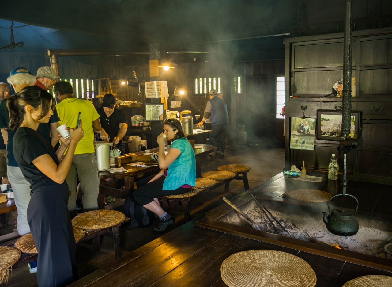 I wtedy, kawałek dalej, w połowie drogi do Magome dociera się do miejsca, które jest i powinno być kwintesencją podobnych szlaków. Na niewielkiej polance, w cieniu drzew wiśni (sądząc pod zdjęciach, podczas kwitnienia jest bajkowo!) od 200 przeszło lat stoi piękna tradycyjna chata, niegdyś część większego zespołu budynków należących do miejscowej rodziny, później „wzbogacaonego” o siedzibę urzędników kontrolujących wycinkę okolicznych drzew. Jedyny ocalały do dziś budynek, jeszcze w czasach Edo zaczął pełnić funkcję herbaciarni i miejsca gdzie wędrowcy mogą odpocząć, skryć przed upałami, lub odwrotnie przed deszczem. I piękne jest to, że Ichikokutochi Tateba Chaya do dziś niezachwianie trwa w tym samym miejscu, służąc piechurom w ten sam sposób co setki lat temu.