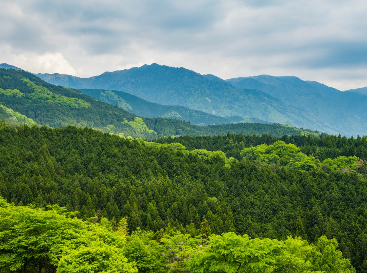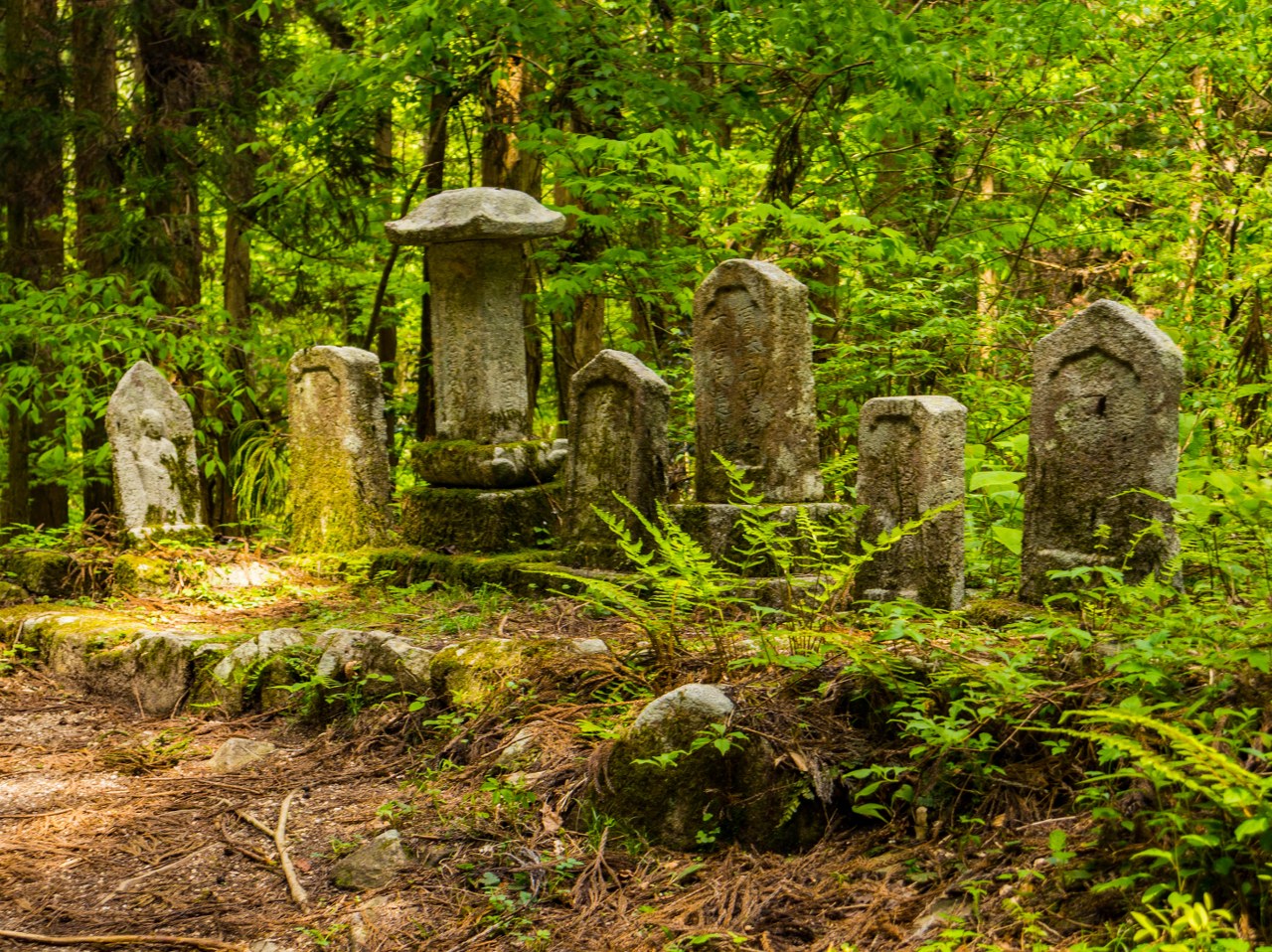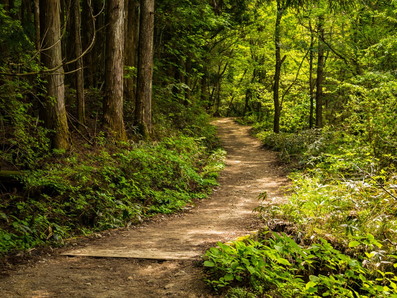 Tuptanie jest przyjemne, choć na koniec asfaltu trzeba czekać całe 2 kilometry. W ramach rekompensaty odcinek odbijający w las okazuje się być najbardziej kapitalnym – wijąca się kamienna, zadbana ścieżka jako żywo daje namiastkę tego jak szlak mógł wyglądać dawniej. Cedry, cyprysiki groszkowe sawara, tuje japońskie i sosny w swym naturalnym środowisku wzrastają nawet i na 40 metrów a swoje miejsce pomiędzy iglakami znajdują też bambusy czy ostatnie kolorowe wciąż wisterie.