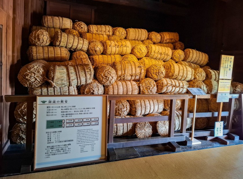 Sam wielki spichlerz zasługuje na osobny akapicik. Pierwotnie był on elementem miejscowego zamku i w okolice Jinya przeniesiono go dopiero po zburzeniu warowni. To tu w wielkich słomianych koszach przechowywano podatek, czyli nic innego jak najpotężniejszą walutę – ryż. Dziś podziwiać można wielką stertę pustych koszy, dawniej pewnie pieły się pod sam dach (też zresztą ciekawy i warty chwili uwagi), od ściany do ściany – obecnie puste przestrzenie zaaranżowano na kilka fajnych sal przedstawiających kawałek historii miasta. Zgrabnie, nawet niemało po angielsku, spoko.