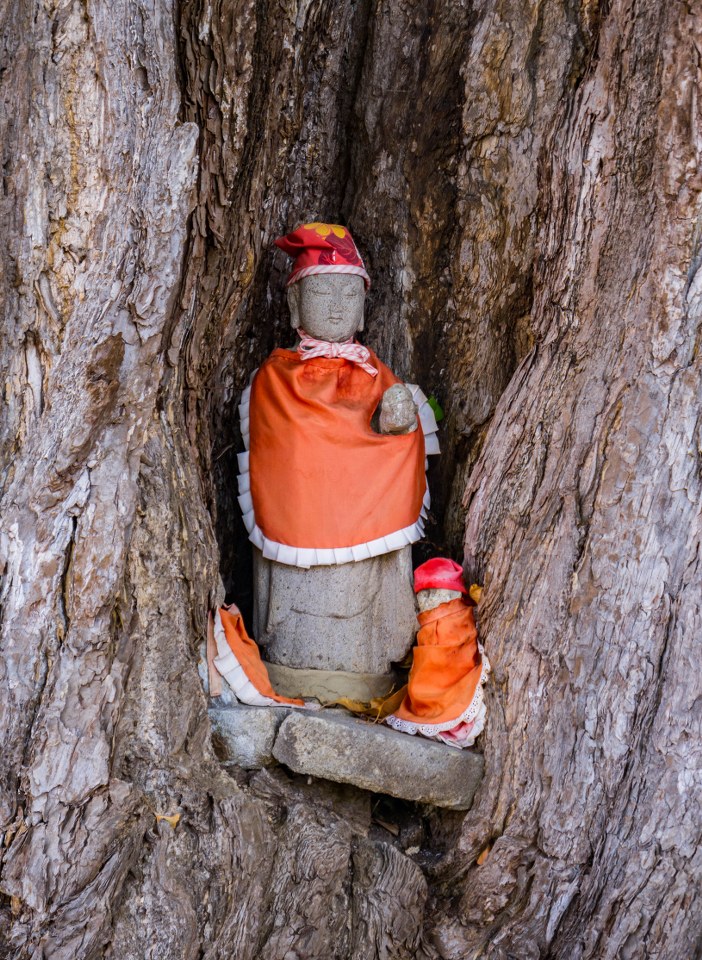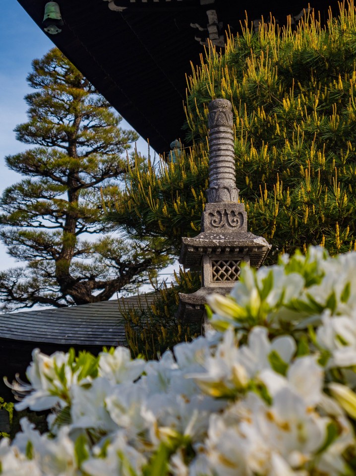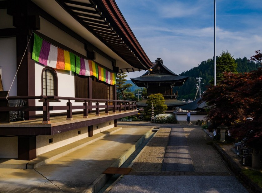 Higashiyama Walking Course (東山遊歩道) na ten przykład, ze wszystkimi swymi świątyniami, chramami, szlakiem ciągnącym się do sąsiedniego parku Shiroyama, wspinającym się do ruin dawnego zamku klanu Kanamori to pomysł na naprawdę fajne popołudnie. Dla mnie niestety było już trochę za późno na 4 kilometry spaceru, ale wam jak najbardziej polecam. Tu zresztą już samo spotkanie z kilkoma świątyniami na skraju lasu robi robotę. Niewielkie buddyjskie zespoły, choć wydają się niepozorne są powiernikami wielkiej historii. Ot, Unryu-ji, jak się okazuje pierwsza świątynia Soto Zen w Hidzie, była rodzinną świątynią klanu Kanamori, w pewnym sensie najważniejszą świątynią u zarania takajamskiej miastowości. Niezwykle estetyczne miejsce, spokojne, wraz z sąsiednią świątynią Daio-ji idealne do zatrzymania się, chłonięcia chwili. Daio-ji pochwalić się może najstarszą dzwonnicą w mieście, co przy częstych pożarach nawiedzających tę część miasta jest rzeczą nie byle jaką. Pośród kwitnących roślin, kwiatów uwagę przykuwają pomniki, rzeźby czy obrazy im towarzyszące – te w Sali Dziesięciu Królów uzmysławiają nam, że religie mogą być różne, ale w każdym piekle prędzej czy później trafisz do wielkiego gara z wrzątkiem 😀