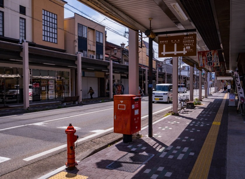 Jedną z najważniejszych przecinających miasto dróg jest ciągnąca się z zachodu na wschód droga krajowa 158, w zachodniej części przybierająca nazwę Yasugawa dori, na wschodzie m.in. Kokubun-ji dori. To jedne z nostalgicznych, acz nie tak bardzo zabytkowych handlowo-usługowych uliczek, wzdłuż których przed kilkoma dziesięcioleciami (w dużej mierze w erze Showa) jak grzyby po deszczu wyrastały dziesiątki sklepów i knajpek. Nie tak oczywista shotengai, ma fajny vibe, a skryte w podcieniach sklepiki i knajpki kuszą by zatrzymać się choć na chwilę.