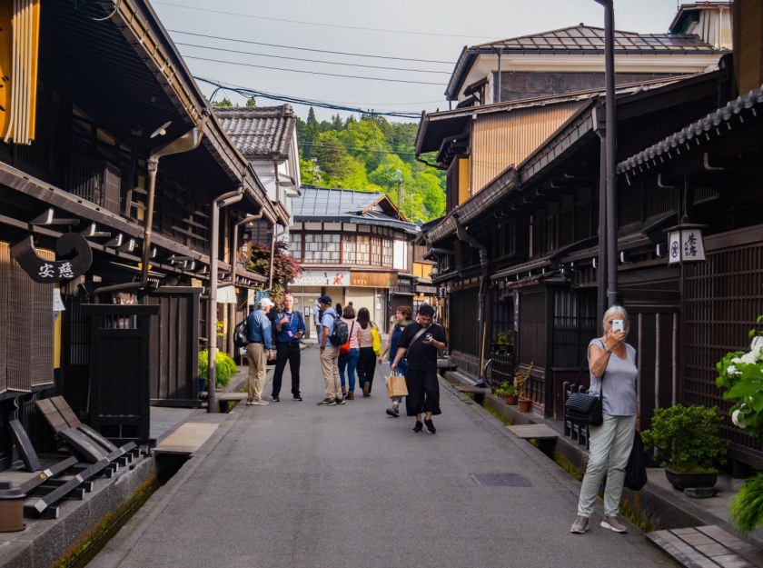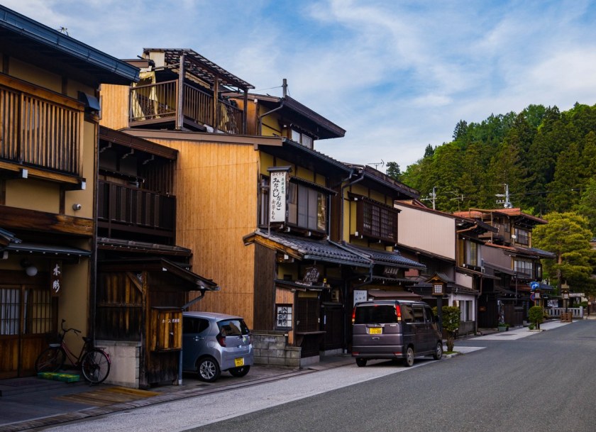 Takayama Jinya jest piękną pamiątką po erze Edo, serce dawnego miasta bije jednak na drugim brzegu Miyagawy. Furui-machi-nami, Starówka, handlowo-rzemieślniczy rdzeń miasta tak zamkowego, jak i późniejszego administracyjnego centrum prowincji. Czerpiące z ducha Kioto, spoglądające w kierunku siedziby Tokugawów, pamiętające jednak o swych korzeniach i w nich najsilniej umocowane. No kurczę, piękne miejsce po prostu, pełne dawnej drewnianej zabudowy, przez wielu nazywane Kioto Hidy (co przy dodatkowym zatrzęsieniu świątyń i chramów wydaje się nienajgorszym porównaniem, szczególnie do dzielnicy Gion), mnie o wiele bardziej przypomina zabytkowe miasteczka z doliny Kiso, i szlaku Nakasendo – Tsumago-juku i Narai-juku. Zresztą podobnie jak i tam i w Takayamie nad zabytkową zabudową roztoczono prawną opiekę.