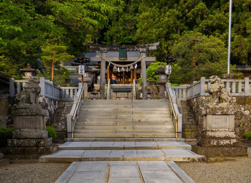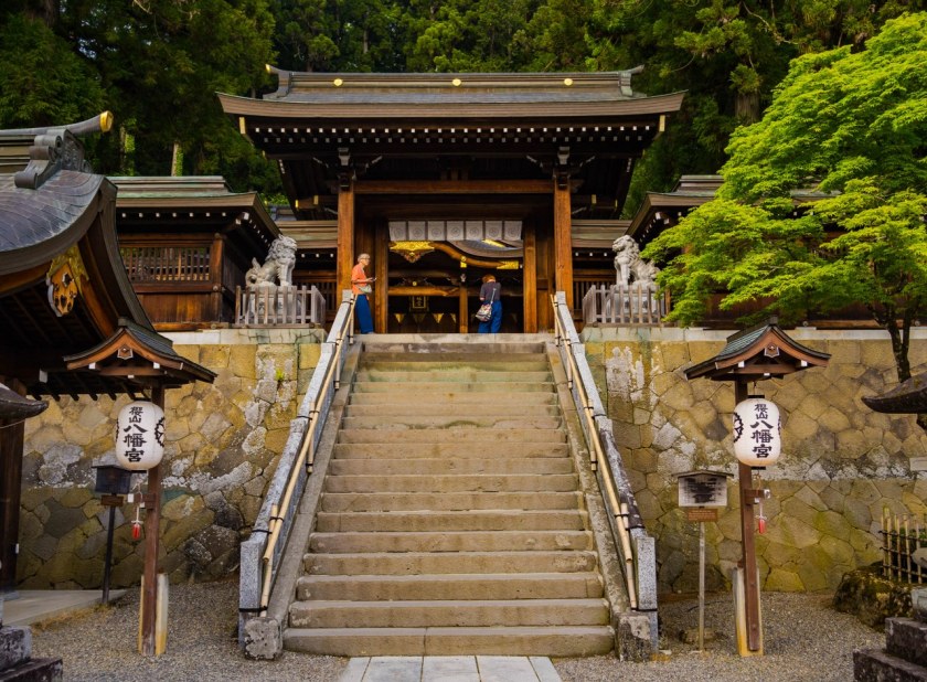 Tak jak południowy spacer zaprowadzi was do ruin najważniejszego zamku Takayamy, tak wędrówka na północ skończyć się może na wzgórzu gdzie dawien dawna wzniesiony został niewielki zameczek Ayzuki, należący ongiś do jednego z pomniejszych klanów – dziś znajduje się tam plac zabaw i cmentarz, a wzgórze na którym je znajdziecie zowie się Kitayama. Nie wiem czy tam dotrzecie, jestem za to pewny, że zawędrujecie całkiem niedaleko, do Sakurayama Hachimangu, jednego z dwóch najważniejszych shintoistycznych chramów w mieście.