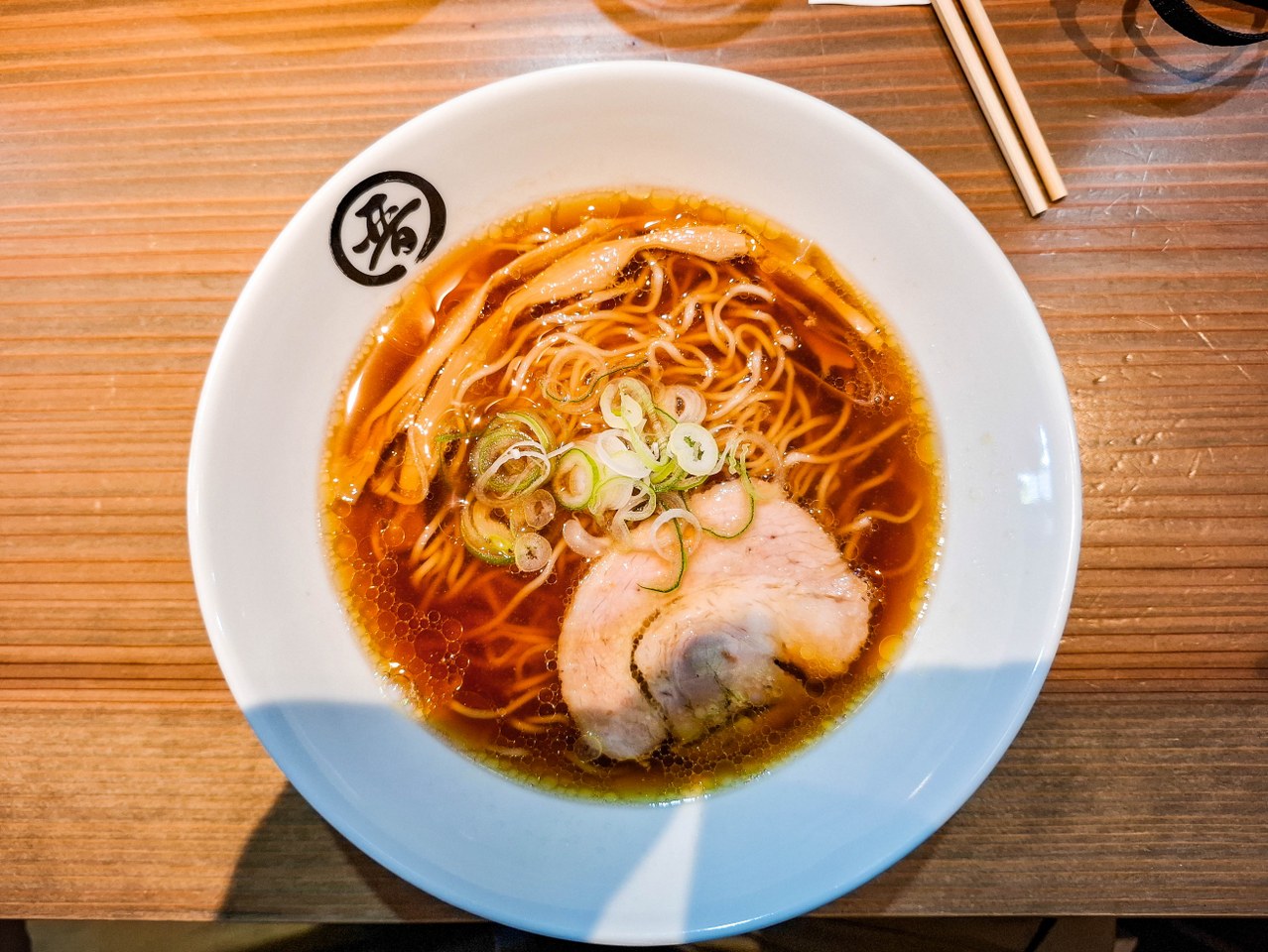 I co wam powiem, żołądek w takich chwilach jest najlepszym doradcą i tak wylądowałem na miejscowym ramenie w 高山中華そば 晋. Takayama ramen, przez miejscowych zwany klasycznie chuka soba jest wyjątkowy ze względu na fakt, że bulion (w tym przypadku oparty na kurczaku, warzywach i płatkach bonito) i sojowe shoyu tare nie spotykają się w misce a już wcześniej, na ostatnim wspólnym etapie gotowania. Z tego co czytałem (i co wydaje się logiczne) otrzymany ramen w pierwszych godzinach po otwarciu lokalu może być delikatny, ale później wcale taki być nie musi. Jest za to dość klarowny, makaron doń dobierany jest cienki a dodatki klasyczne, cebulka, menma i plastry chashu. I jest to rzecz pyszna. I szybka.