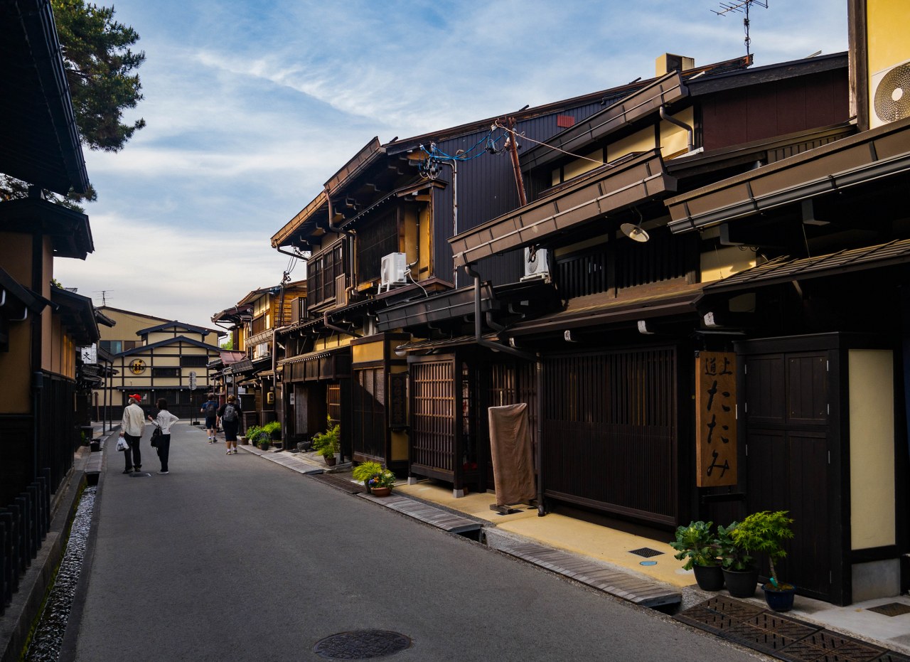 Sercem Takayamy jest Stare Miasto, z kolei sercem Starówki jest Sanmachi Suji, skłądające się z trzech ulic (dla niepoznaki ponumerowane od jeden do trzy – Kamiichino-machi, Kaminino-machi, Kamisanno-machi) i podobnie jak w dolinie Kiso sprawiają one wrażenie jakby przeniesionych w czasie, nad głowami nie zwisa plątanina kabli, samochodów brak i tylko kolorowe reklamy Snoopyego, My Hello Kitty czy Miffy przypominają, że mamy XXI wiek. Każda z ulic długa jest na bez mała 600 metrów, w ciągu dnia przeżywając istne oblężenie – nie ma w mieście miejsca bardziej popularnego, tak wśród miejscowych jak i turystów.