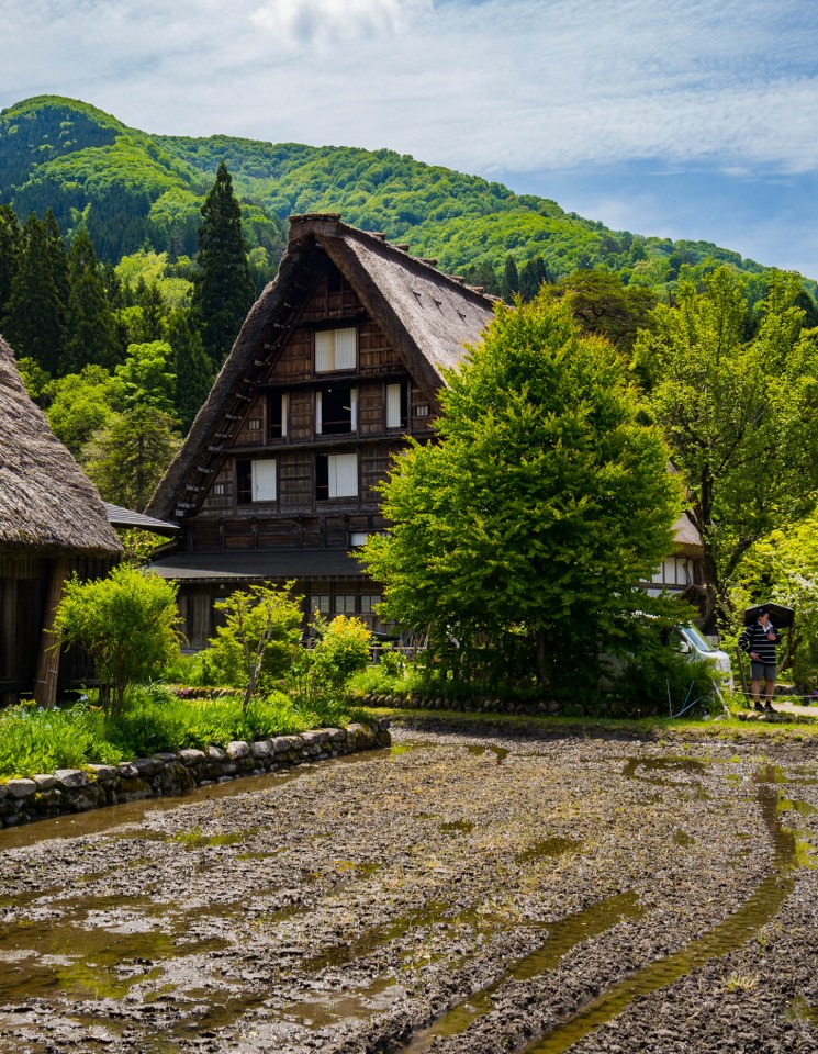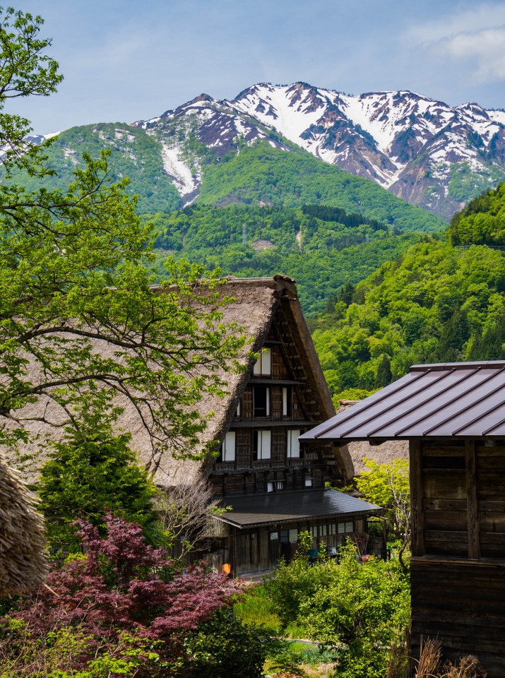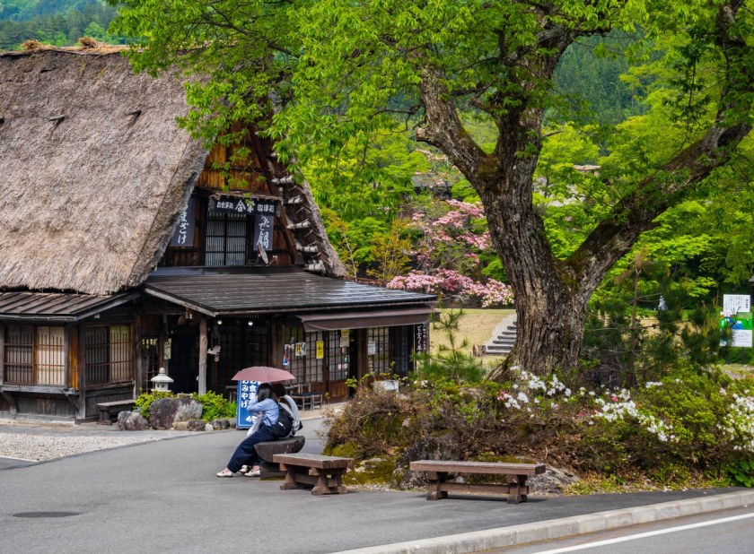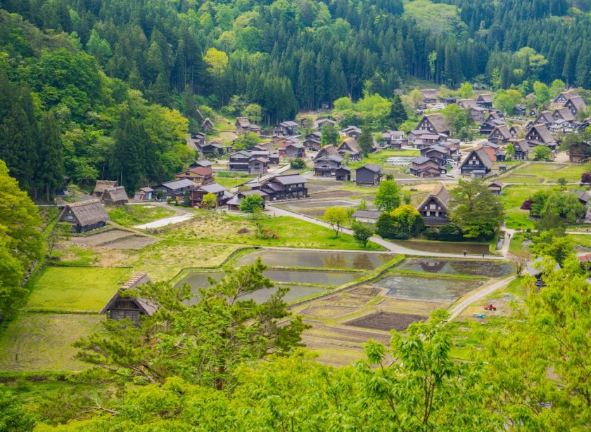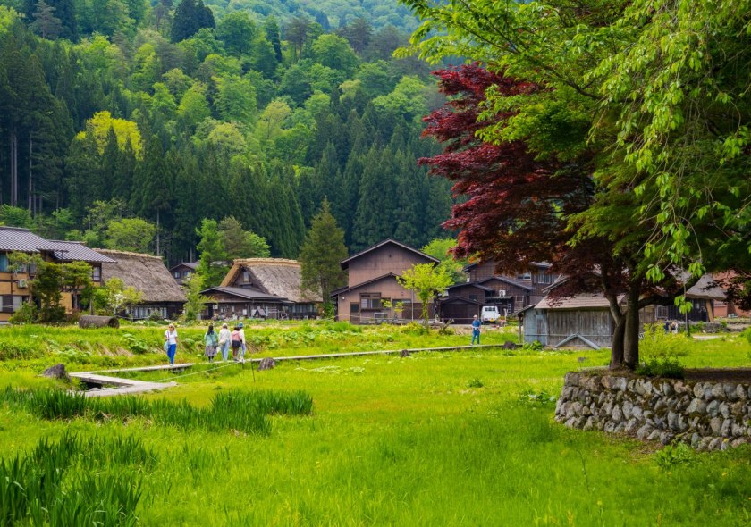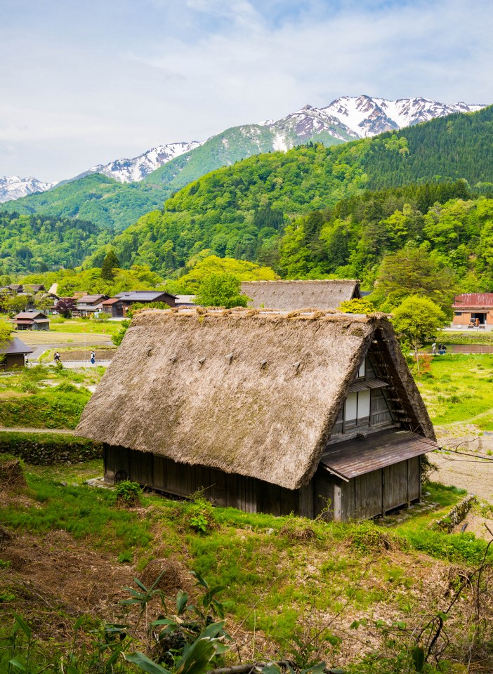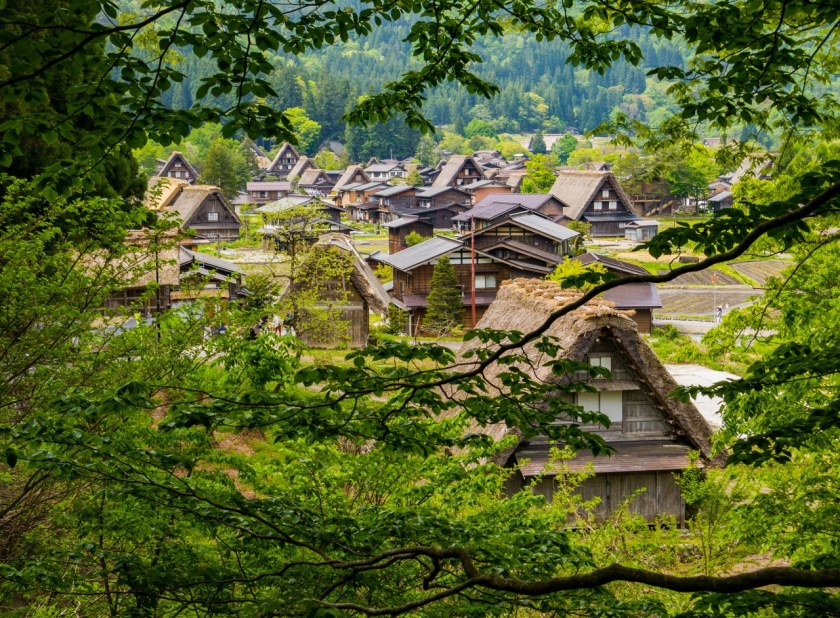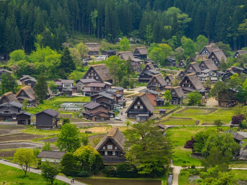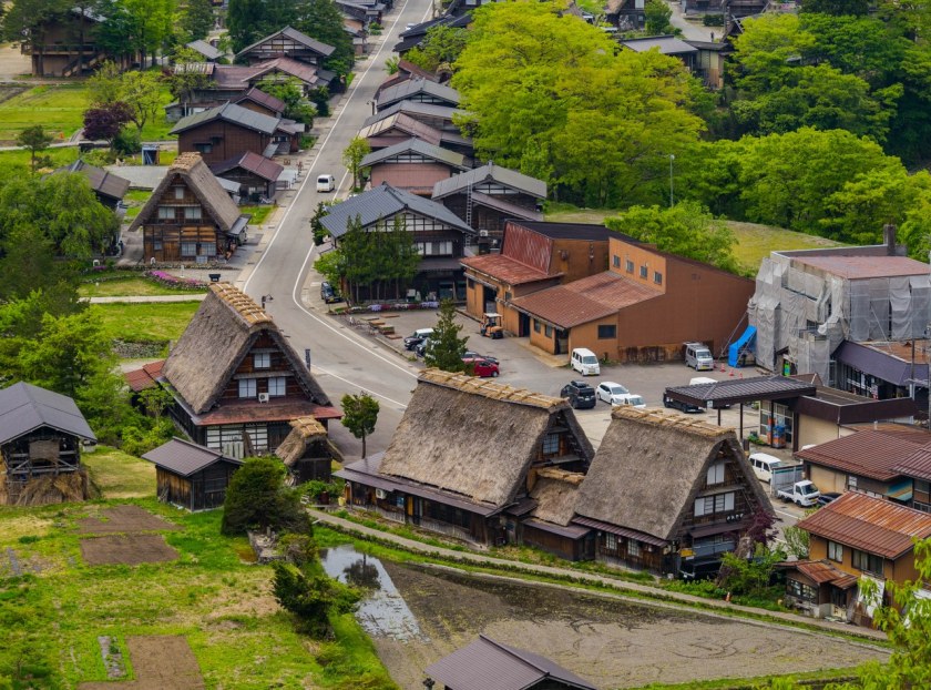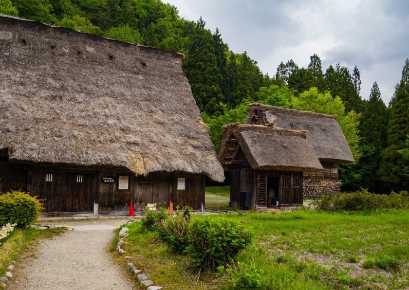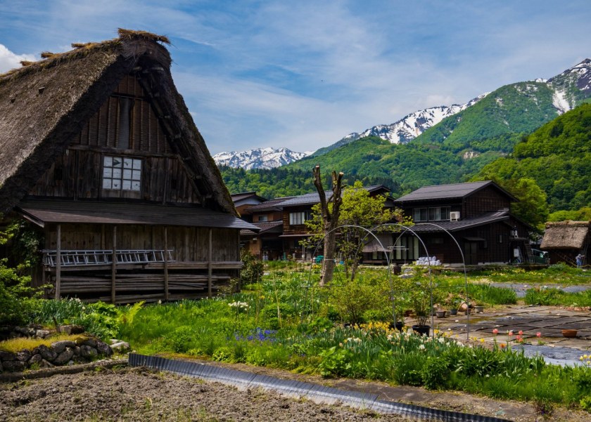 Ogimachi będąc największym skupiskiem domów gasshō-zukuri nie bez przyczyny jest najczęściej odwiedzaną z wiosek – znajdziecie tam niemal 60 krytych strzechą domostw. W Ainokurze 20, w Suganumie 9, reszta pojedynczo, parami, trójkami (i rzadziej w większej liczbie) rozsiana jest w pozostałych wioskach, zakłada się, że jest ich razem około 150. Najstarsze liczą sobie prawie 300 lat, w krajobrazie mieszają się one z równie ładną drewnianą zabudową ery Edo. Znajdzie się też i kilka śladów po współczesności, ale kryte blachą domy stanowią na szczęście mniejszość i nikną pomiędzy drewnianymi sąsiadami.