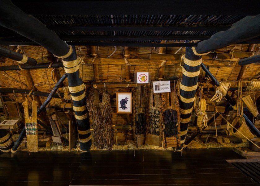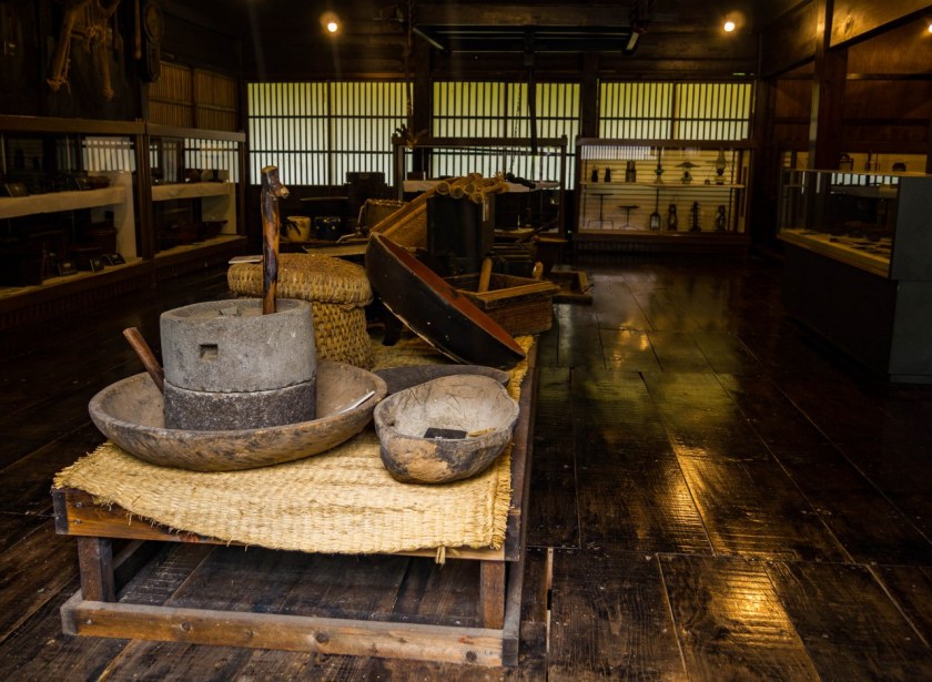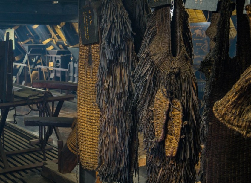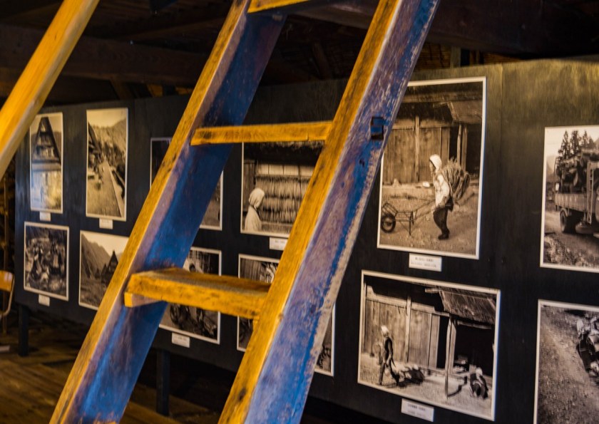 Tym co jednak robi jeszcze większe wrażenie jest sąsiadujący z pawilonem, wielgaśny czteropiętrowy dom (pełniący funkcję muzeum), którego ważnym elementem jest kuri, komnaty kapłana, jego rodziny a także – a może przede wszystkim – salon z paleniskiem irori. Niepozorny kominek jest tutaj bohaterem, bo dzięki niemu zwiedzanie wyższych pięter przypomina spacer po wędzarni. Uciekający z niższych pięter dym był jednym z elementów kluczowych dla jedwabników starających się przetrwać mroźne zimy doliny, dziś spowite w lekkiej mgiełce poddasze służy edukacji – dwa piętra pełne eksponatów, jeszcze bardziej niż w Domu Wada przybliża życie lokalnej społeczności.