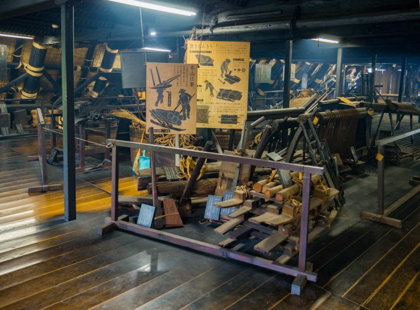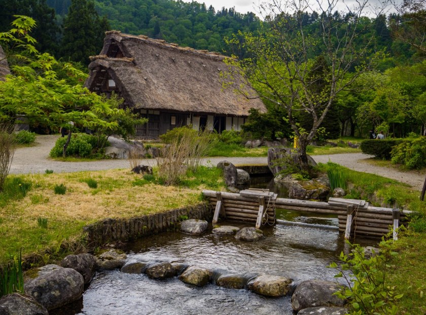 W 13 lat zgromadzono tu kilkanaście budynków z okolicznych wsi, od stodoły, stajni, przez kapliczki, młyny i niewielkie domostwa po olbrzymie rezydencje, wedle badań należące do najstarszych zachowanych domów gasshō w Shirakawa-go. Przeniesione, odbudowane, uratowane, w odróżnieniu do żyjącego Ogimachi tu mamy pewność, że nie zaglądamy komuś do mieszkania. Nie wiem kto odpowiadał za rozplanowanie skansenu, ale należą mu się brawa – bardzo fajnie i estetycznie syćko tu poukładano.