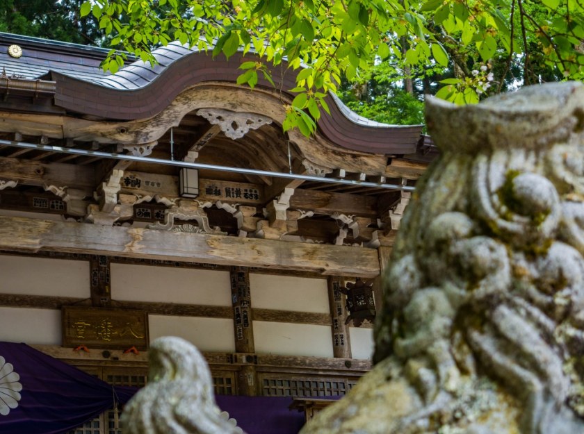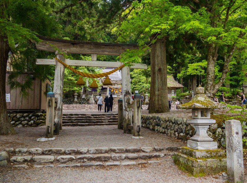 Tak jak najważniejszą, buddyjską świątynią jest Myozen-ji, tak wyznawcy shinto swe kroki skierują przede wszystkim do chramu Shirakawa Hachiman. Oddalony, skryty na skraju lasu, początkami sięgający ponoć VIII-wieku, swą obecną formę zawdzięcza Yamashicie Ujikatsu, samurajowi wiernemu siogunom z Edo. Za czasów Tokugawów chram urósł do rangi najważniejszego w całej dolinie, podczas restauracji Meiji zasłynął niewzruszeniem na shinbutsu hanzenrei, czyli przelewający się przez cały kraj ruch rozdzielenia buddyzmu od shinto – dzięki czemu do dziś w głównym pawilonie chramu znajduje się rzeźba Buddy ufundowana przez Ujikatsu. Nieżle.