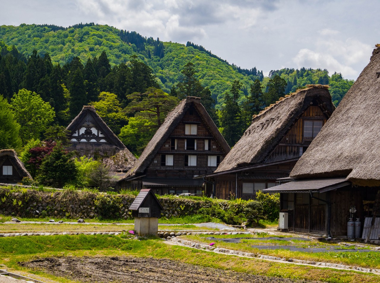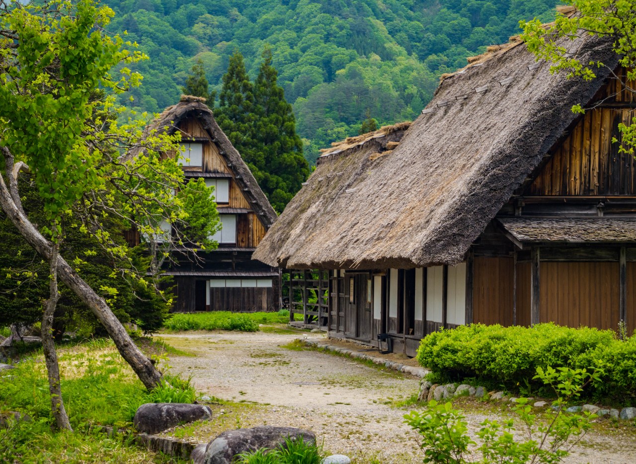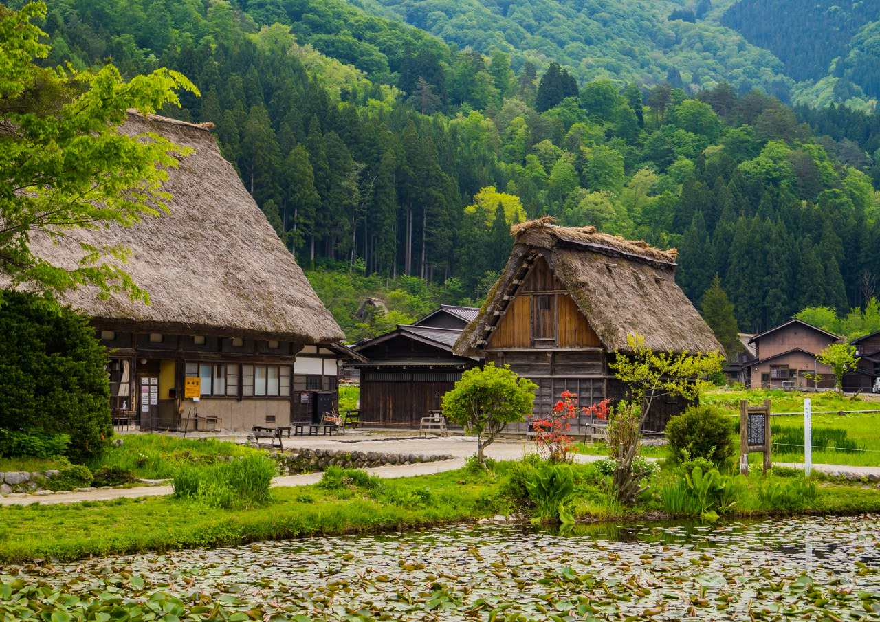 Ogimachi będąc największym skupiskiem domów gasshō-zukuri nie bez przyczyny jest najczęściej odwiedzaną z wiosek – znajdziecie tam niemal 60 krytych strzechą domostw. W Ainokurze 20, w Suganumie 9, reszta pojedynczo, parami, trójkami (i rzadziej w większej liczbie) rozsiana jest w pozostałych wioskach, zakłada się, że jest ich razem około 150. Najstarsze liczą sobie prawie 300 lat, w krajobrazie mieszają się one z równie ładną drewnianą zabudową ery Edo. Znajdzie się też i kilka śladów po współczesności, ale kryte blachą domy stanowią na szczęście mniejszość i nikną pomiędzy drewnianymi sąsiadami.