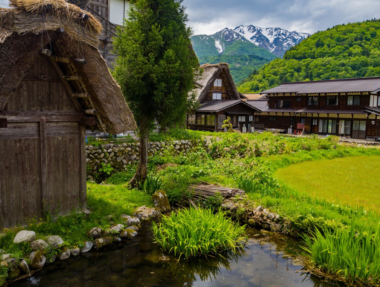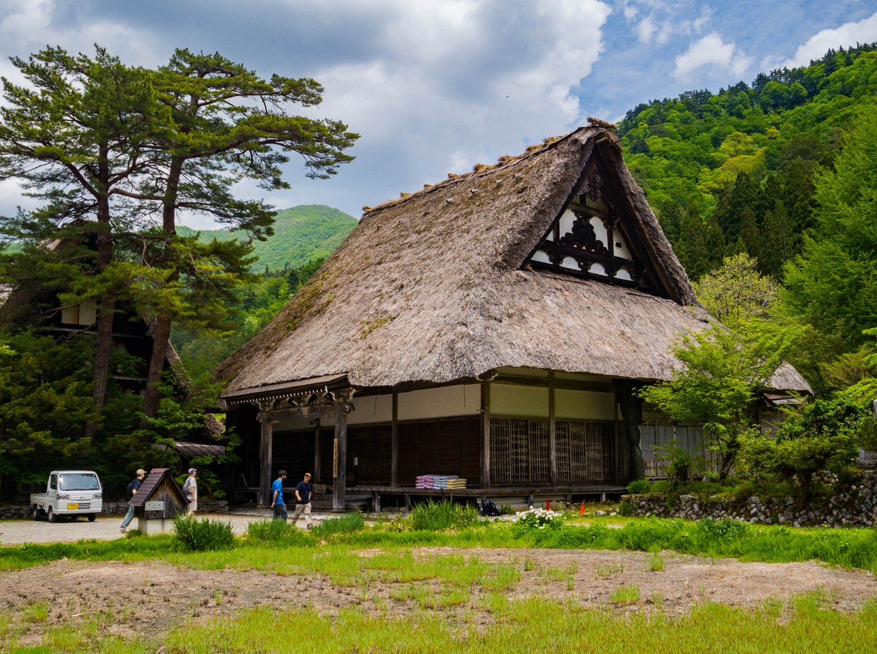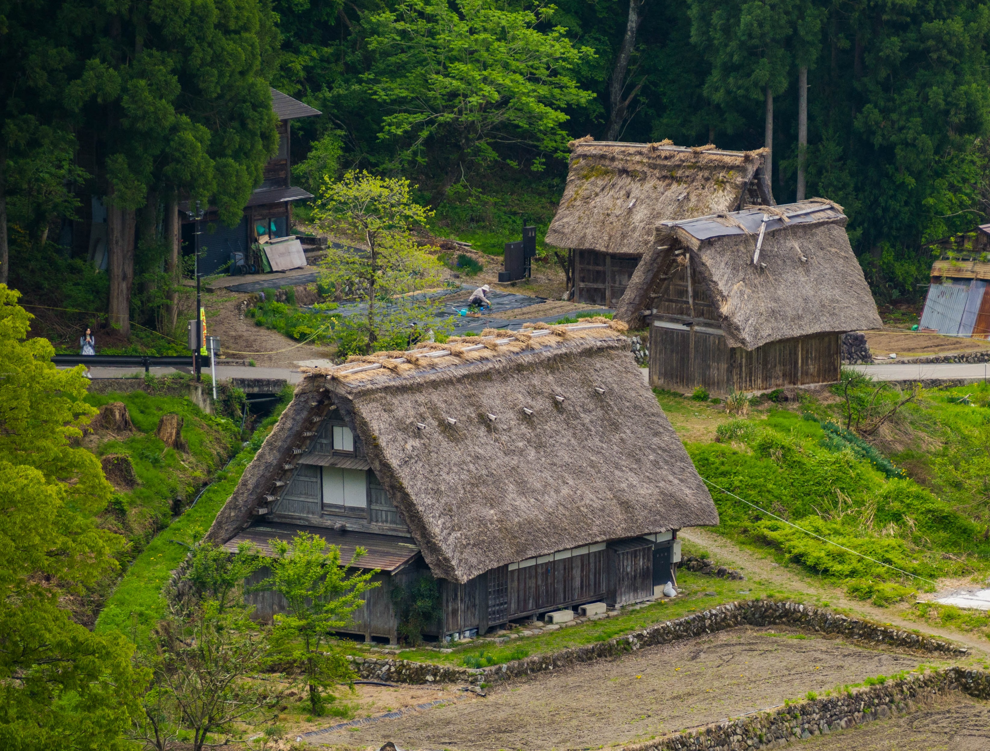 Ogimachi będąc największym skupiskiem domów gasshō-zukuri nie bez przyczyny jest najczęściej odwiedzaną z wiosek – znajdziecie tam niemal 60 krytych strzechą domostw. W Ainokurze 20, w Suganumie 9, reszta pojedynczo, parami, trójkami (i rzadziej w większej liczbie) rozsiana jest w pozostałych wioskach, zakłada się, że jest ich razem około 150. Najstarsze liczą sobie prawie 300 lat, w krajobrazie mieszają się one z równie ładną drewnianą zabudową ery Edo. Znajdzie się też i kilka śladów po współczesności, ale kryte blachą domy stanowią na szczęście mniejszość i nikną pomiędzy drewnianymi sąsiadami.