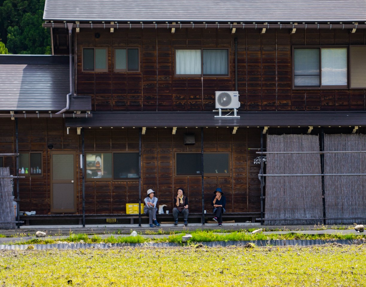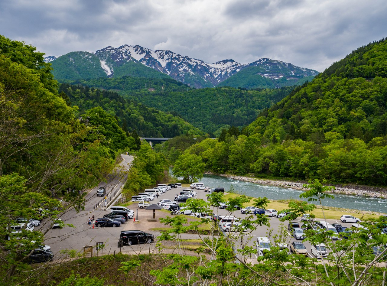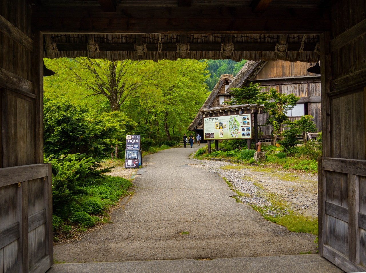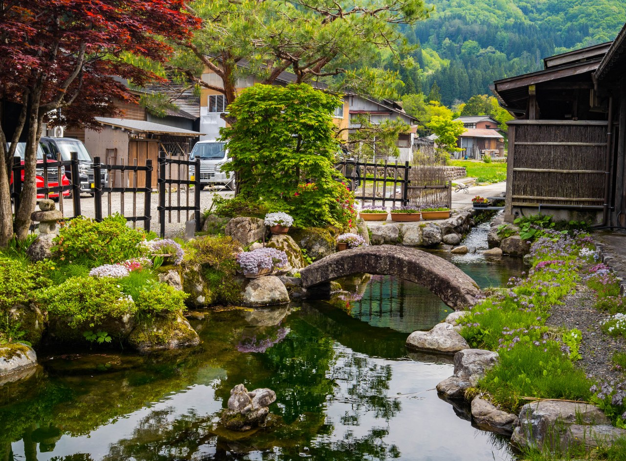 Przybywając na miejsce pierwszym (bądź drugim) autokarem, jeszcze przed pierwszymi zorganizowanymi wycieczkami, Ogimachi wydaje się wioską wręcz senną. W moim przypadku było przed 9 rano, do otwarcia pierwszych kawiarni i restauracji pozostawała godzina (na późne śniadanko polecam Shirakawago Restaurant Irori, gdzie zamówić można tak fajny secik śniadaniowy, sporo vege wariantów soby czy np. udon curry z wołowiną Hida), pojedynczy mieszkańcy rozpoczynali poranne doglądanie swoich poletek i ogródków. Powiem wam, że w takim spokojnym i kameralnym wydaniu było dosko, a myślę, że jesienią, z nisko zawieszonymi chmurami byłoby w ogóle obłędnie (choć tłoczniej). No nie miałem na co narzekać: domy gasshō, majowa, soczysta zieleń i wysokie góry pokryte resztkami śniegu świetnie się uzupełniały.