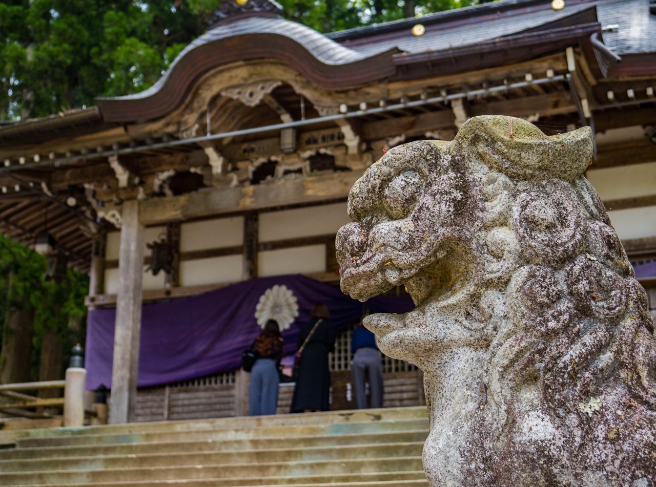 Chram niemalże sąsiaduje ze świątynią Myozen-ji, od przystanku autobusowego dzieli go nie niespełna 1,5 km i to wystarczy by zaglądało tu mniej osób. Co jakiś czas da się jednak słyszeć brzdęk monet i podwójne klaśnięcie w dłonie. Zdecydowanie skromniejsze (od sąsiada) w założeniu, ale niezwykle urokliwe to miejsce. W październiku dwie kamienne bramy torii pokonuje jednak zdecydowanie więcej pielgrzymów. Turystów też. Wtedy to odbywa się tu Festiwal Doburoku, matsuri, które w uproszczeniu moglibyśmy przyrównać do dożynek podczas, których dziękuje się za plony, wznosząc za nie toast doburoku, czyli takiego warzonego w chramach niefiltrowanego, pierwotnego sake.