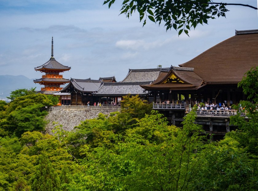 - można spróbować dostać się samolotem. Tak po części. Bo też Kioto nie posiada lotniska i najbliższe połączenia obsługuje Osaka. I tak, dolecieć można już z Europy (np. Etihad z przesiadką w Abu Zabi) ale też – choć z tej opcji skorzystałbym bardziej na zasadach ciekawostki i odhaczenia z bucketlisty – będąc już na wyspach skorzystać z jednej z japońskich linii lotniczych, np. Peach (z Tokio już za 4-5tysięcy jenów z bagażem podręcznym). Ostatnią zagwozdką pozostaje późniejsze dotarcie z lotniska do Kioto – loty międzynarodowe (oraz wspomniane Peach) lądują na lotnisku Kansai skąd bezpośrednio do dawnej stolicy jedzie Limited Express Haruka (2200 jenów, 70 minut). Z drugiego lotniska Osaka Itami (tam latają krajowe ANA czy Japan Airlines) do Kioto najłatwiej dostać się autobusem Hankyu Kanko (1500 jenów, 50 minut).