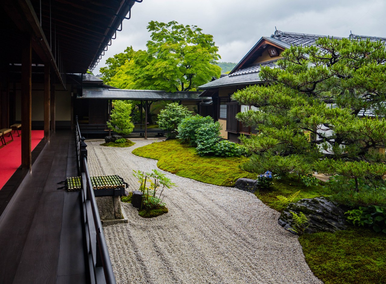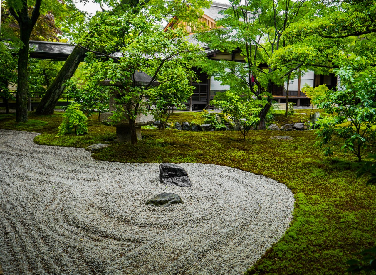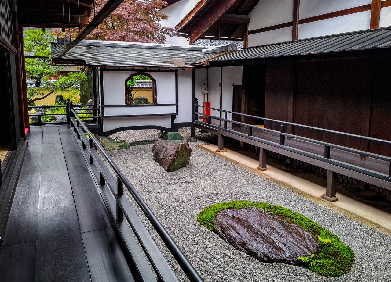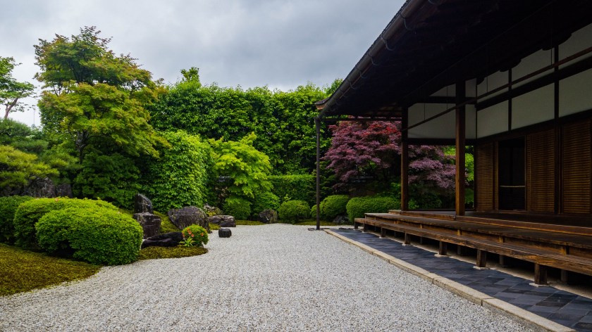 Ogrody trzech odwiedzonych przeze mnie pod-świątyń – choć mniejsze, bardziej kameralne i niekiedy bardziej minimalistyczne niż słynniejsi krewni z największych świątyń Kioto – robią piorunujące wrażenie, przede wszystkim tym, że atmosfera przy nich panująca uderzała we wszystkie nuty sprzyjające medytacji. Towarzyszyły mi jedna, maksymalnie dwie osoby, każdy miał miejsce dla siebie, swoją przestrzeń, czas. Nie trzeba było się śpieszyć, miast tego powoli chłonąć to co nas otacza. W świątyni Ryogen-in ogrodów do wyboru jest aż pięć, każdy totalnie inny, o symbolice zdawkowo, ale wystarczająco opisanej na ulotce, otrzymywanej przy kupnie biletu. Znajdziecie tu najstarszy ogród suchego krajobrazu w Daitoku-ji, jak i najmniejszy w całej Japonii.